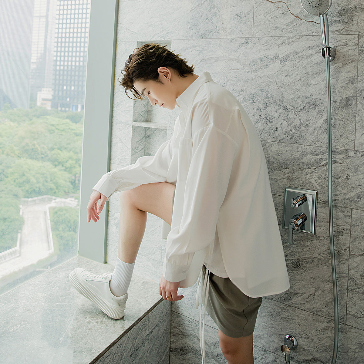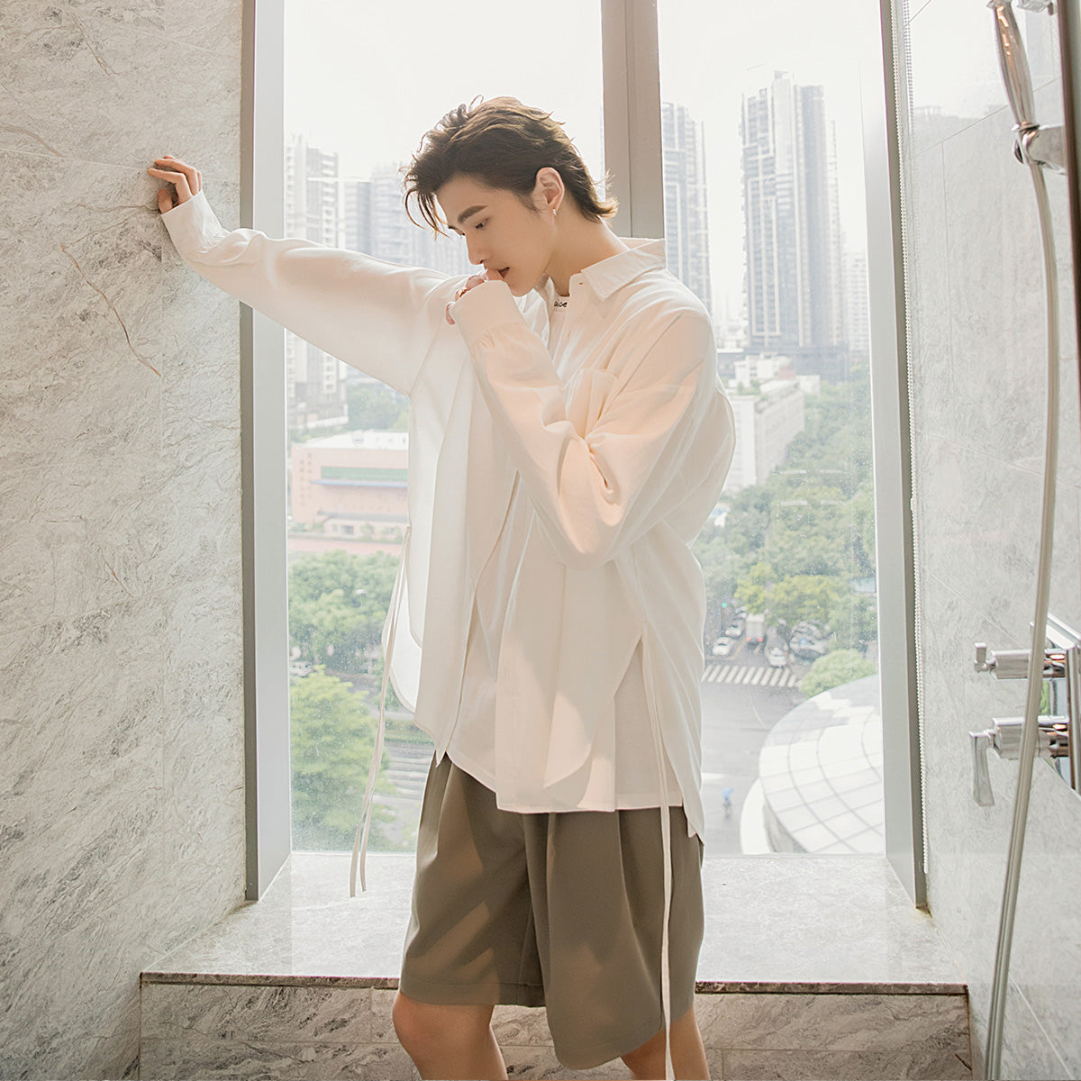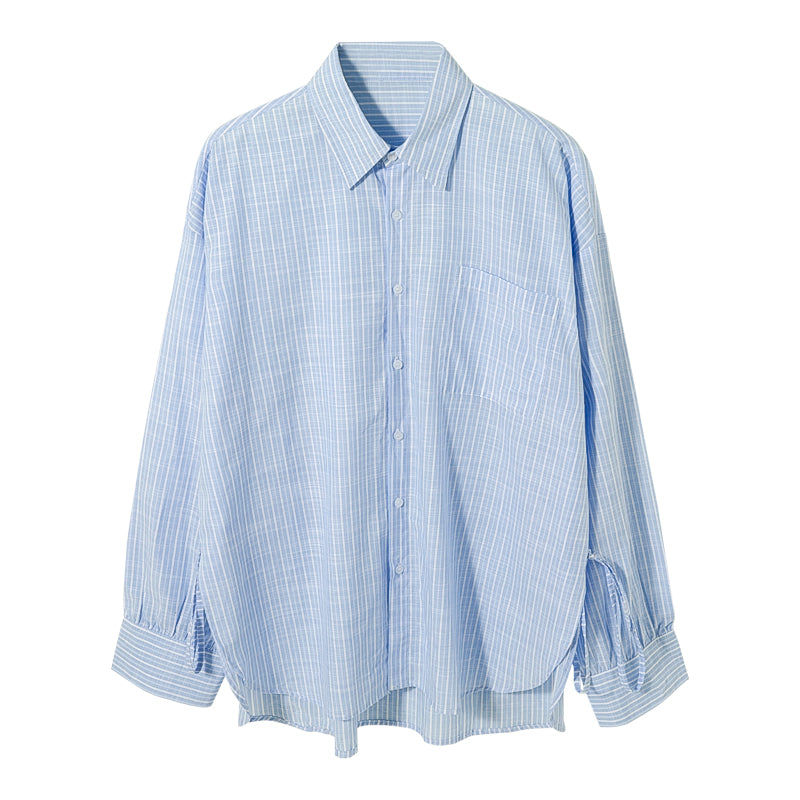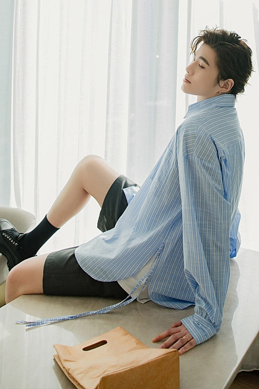 CHIC ERRO Chic Erro summer long-sleeved blue and white striped shirt male Korean version of the trend of loose men's thin shirt jacket