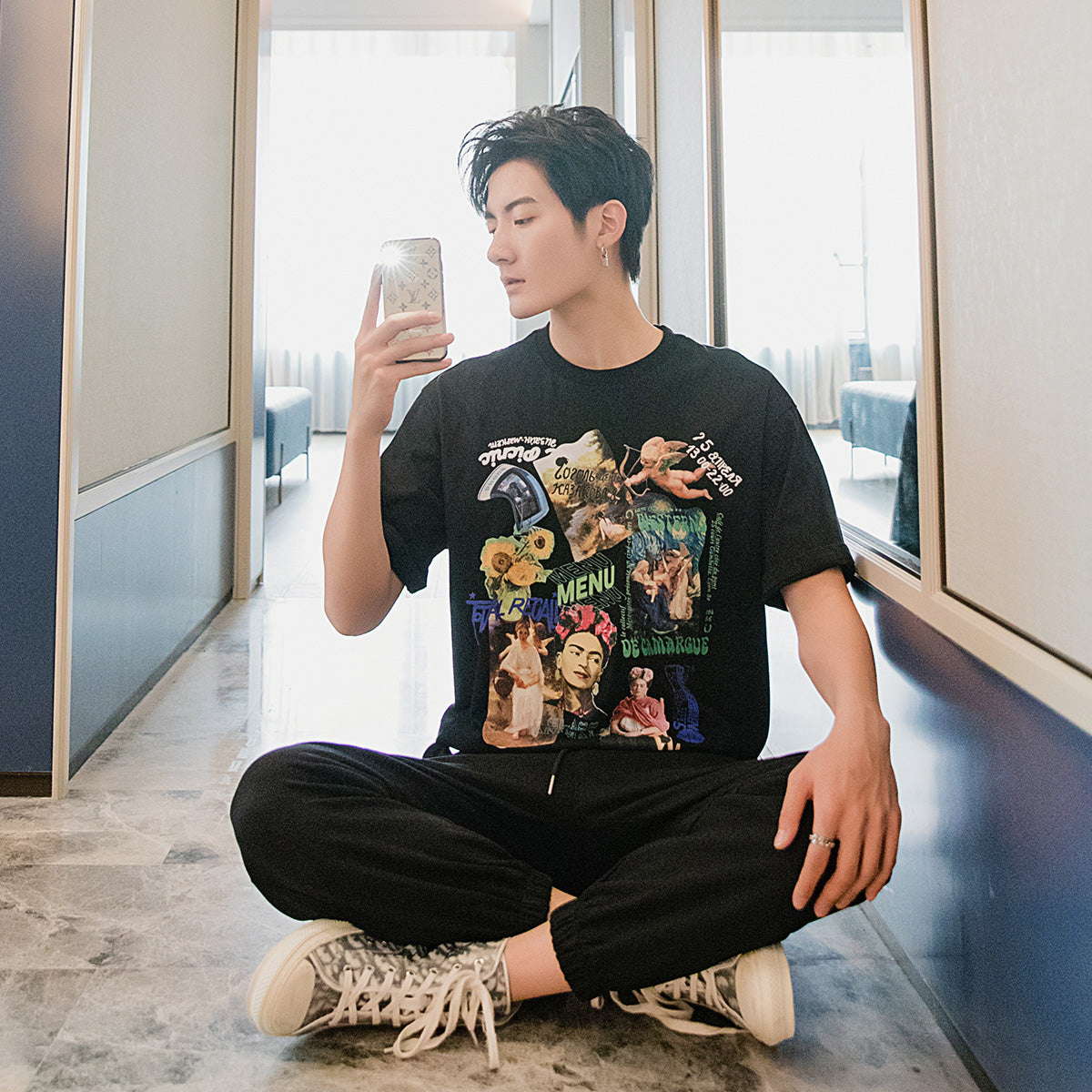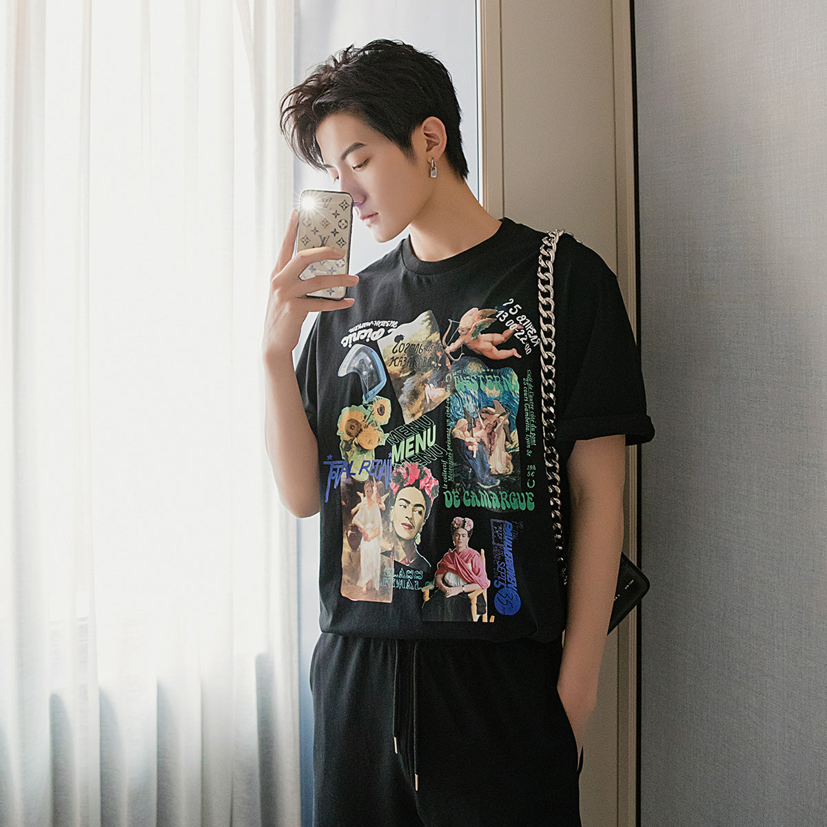 CHIC ERRO Chic Erro summer printing short-sleeved men's tide brand trend five-point sleeve loose men's half-sleeved white t-shirt