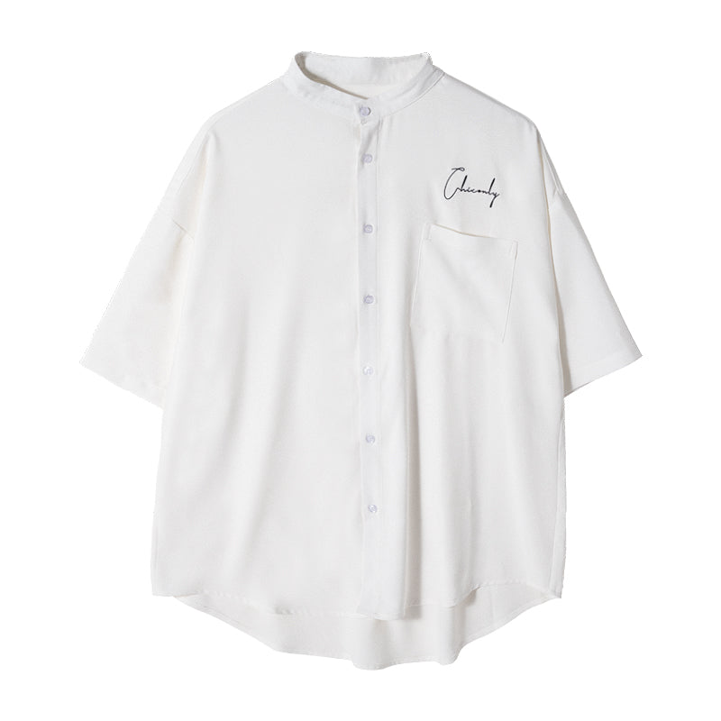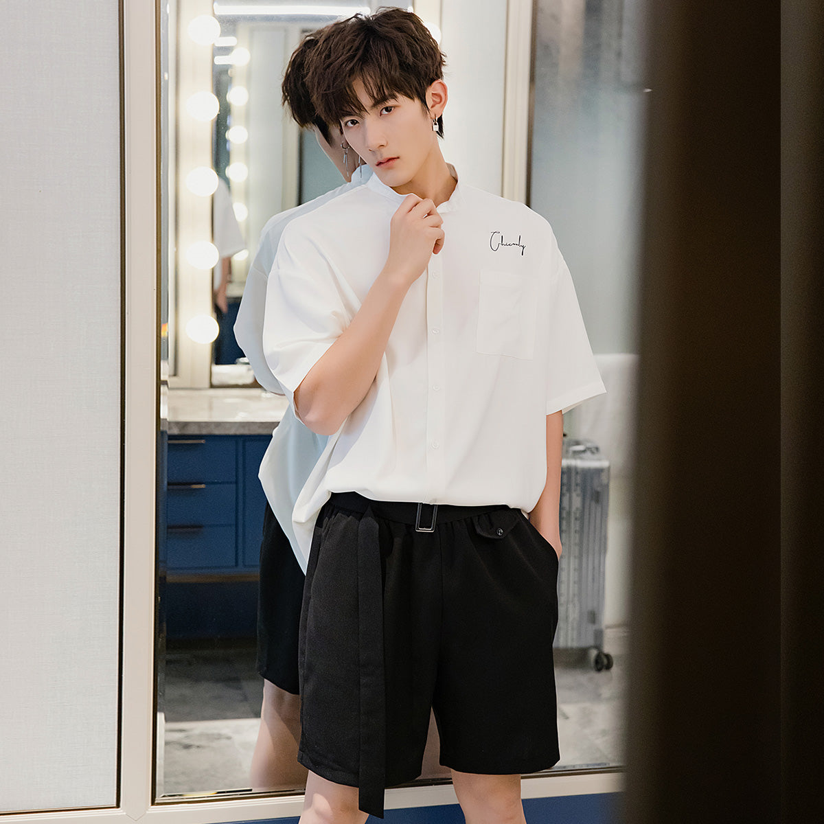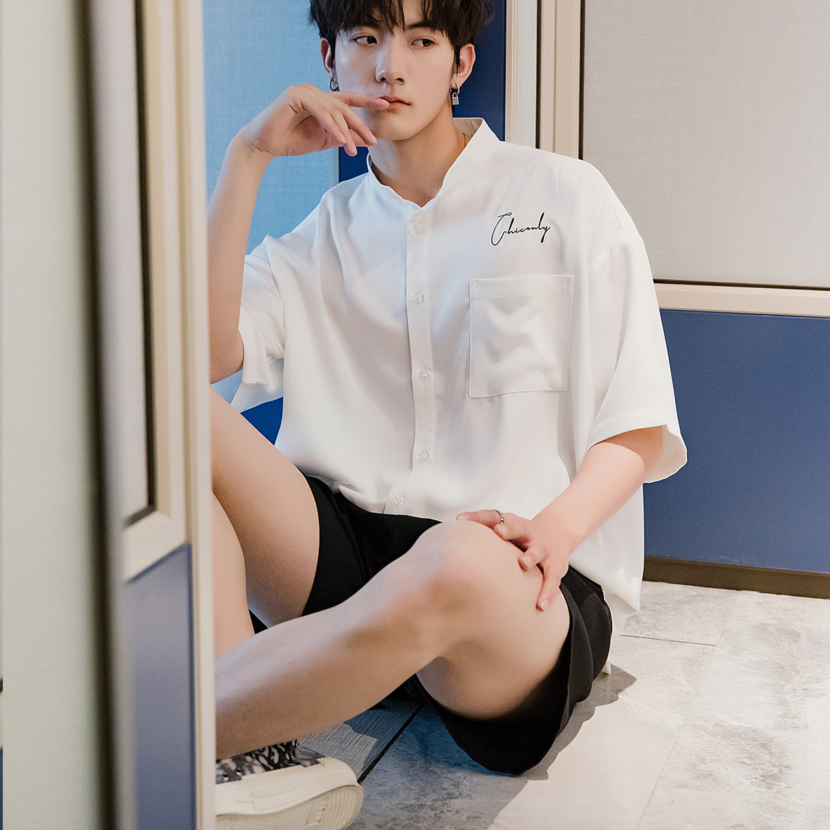 CHIC ERRO Chic Erro summer short-sleeved white shirt male Korean version of the trend of men's loose white five-point sleeve stand-up collar shirt