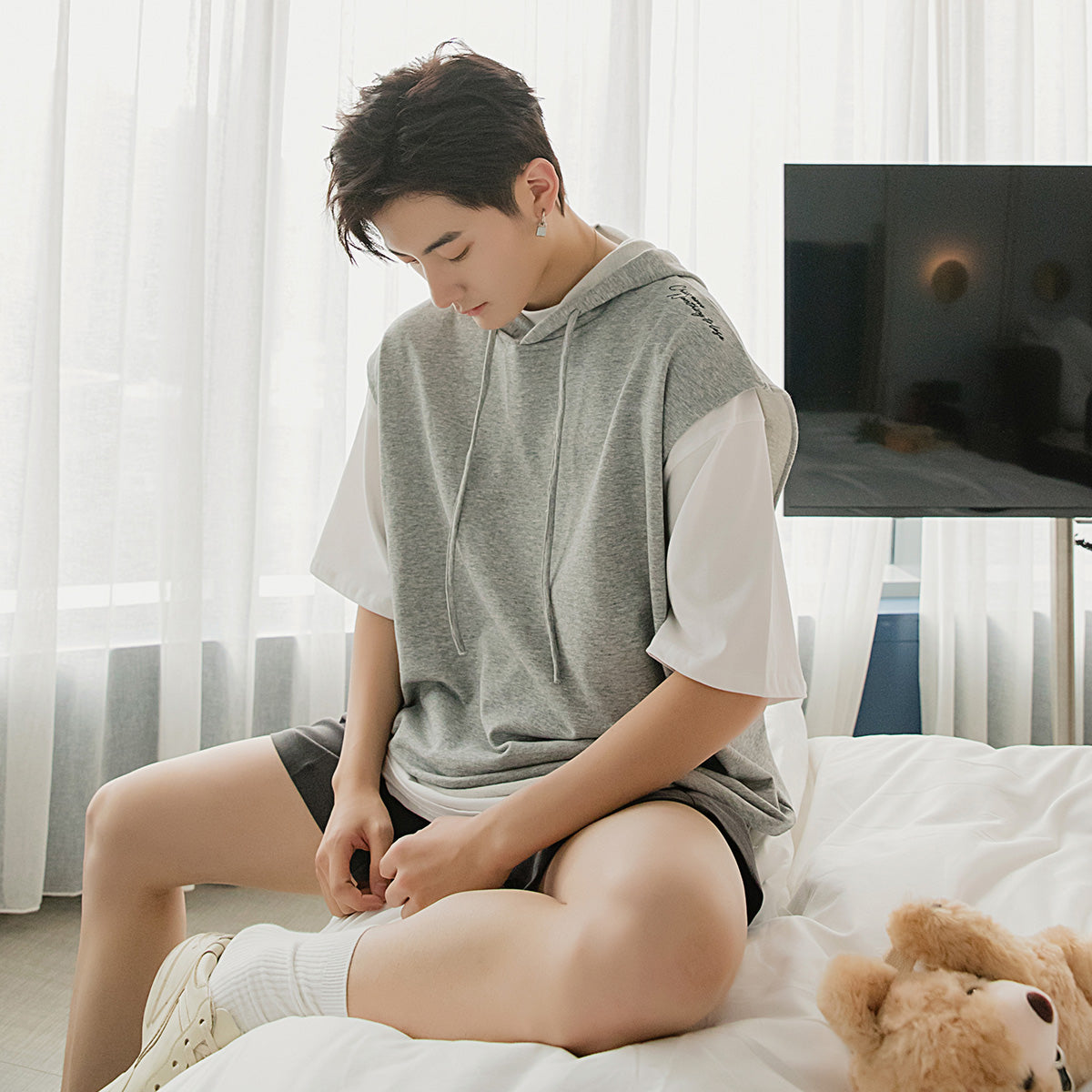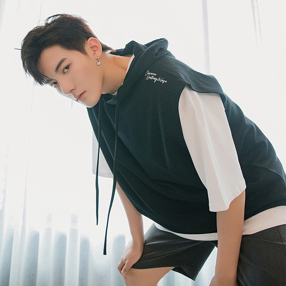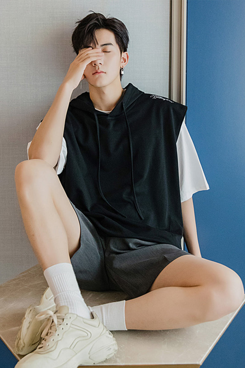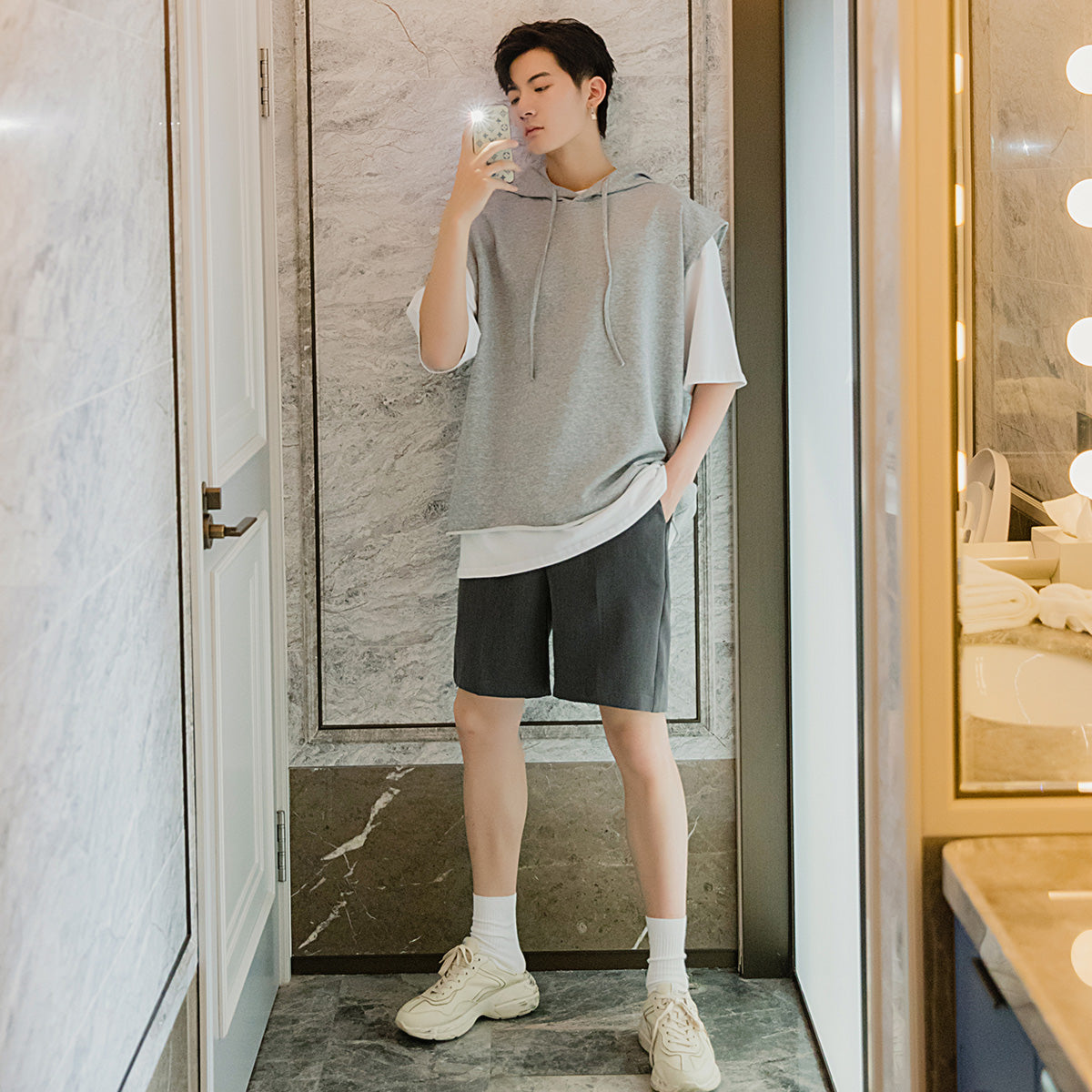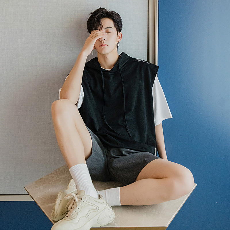 CHIC ERRO Chic Erro summer thin black vest loose men's waistcoat sleeveless hooded sweater vest men trend