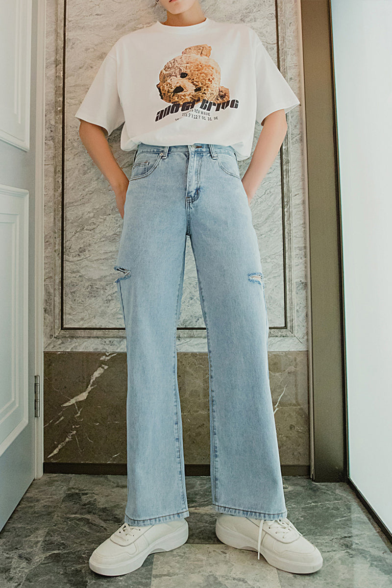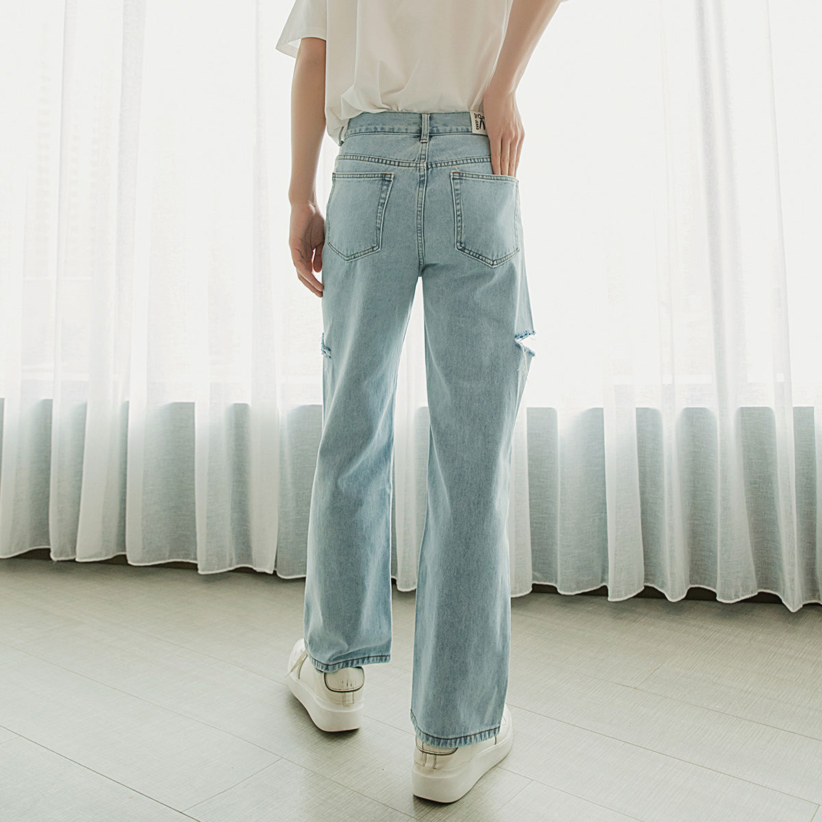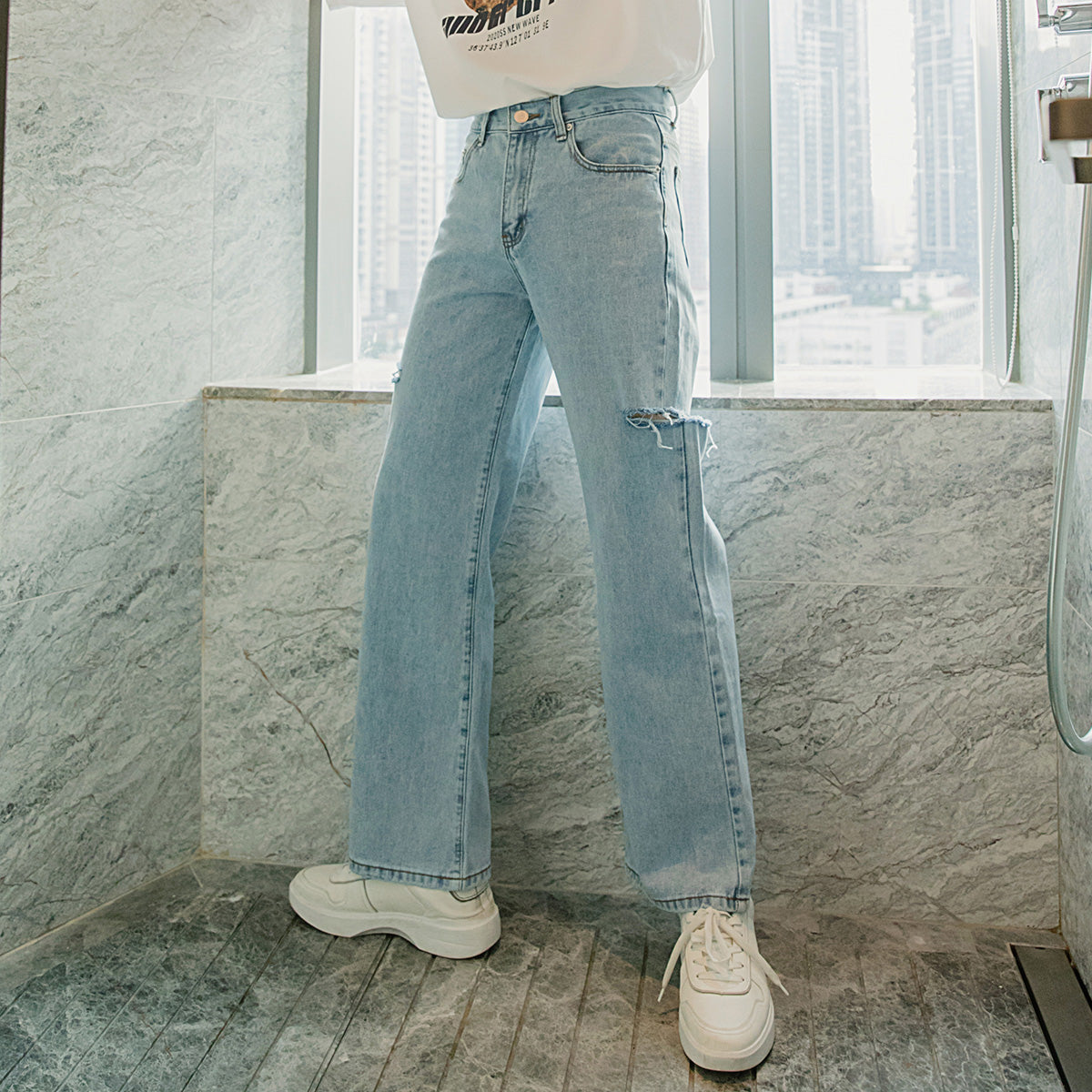 CHIC ERRO Chic Erro summer thin casual pants men's Korean loose straight wide-leg pants men's ripped jeans