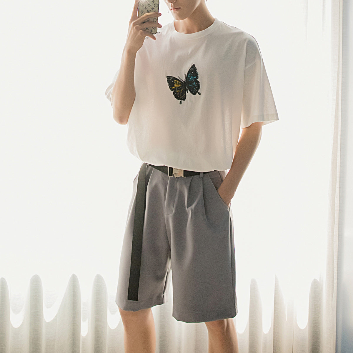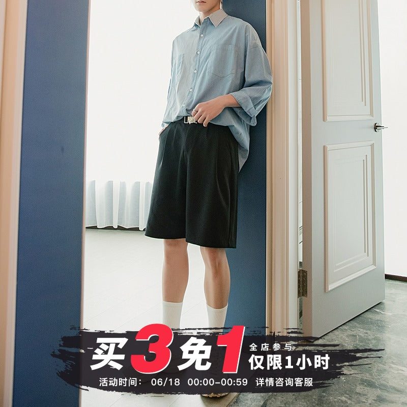 CHIC ERRO Chic Erro summer thin five-point pants male Korean version of the trend loose straight men's casual black shorts