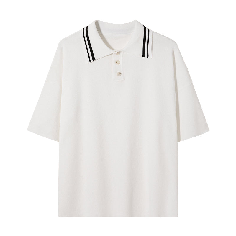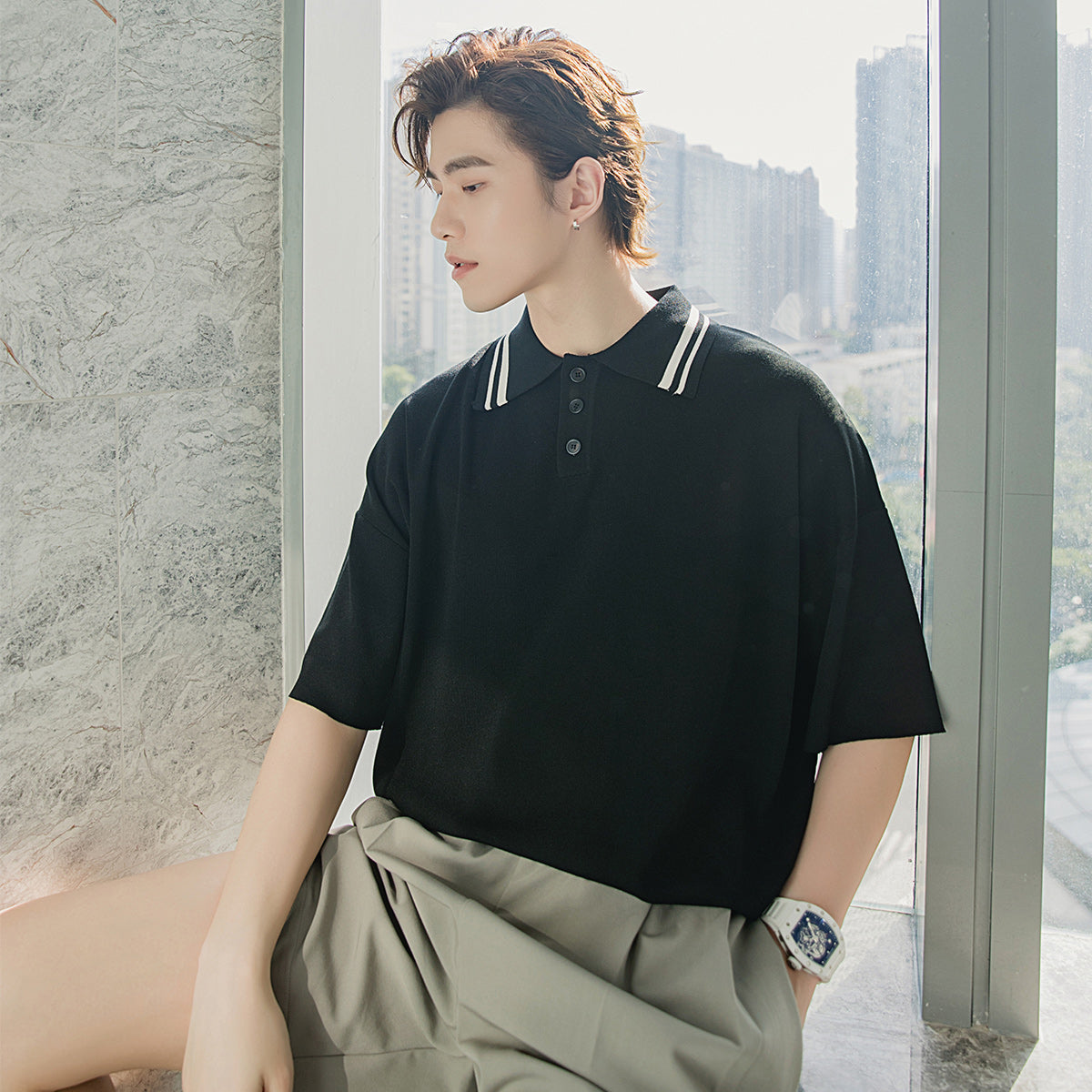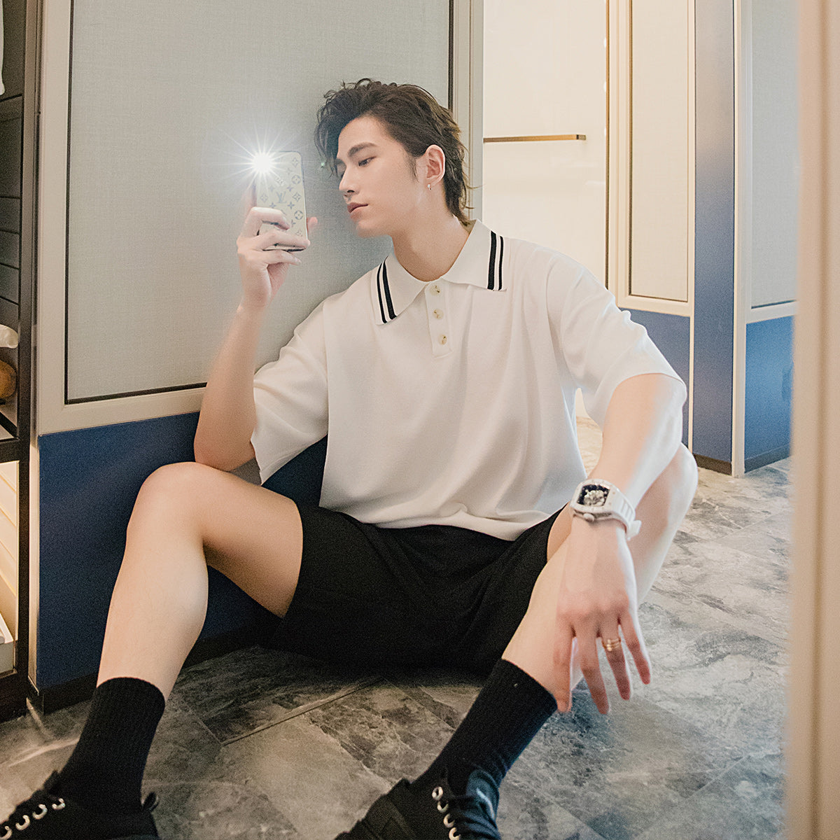 CHIC ERRO Chic Erro summer thin knit college style short-sleeved men's trend loose white t-shirt men's polo shirt