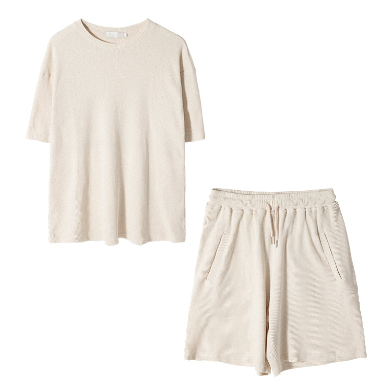 CHIC ERRO Chic Erro summer thin knit short-sleeved t-shirt shorts two-piece men's loose casual suit men