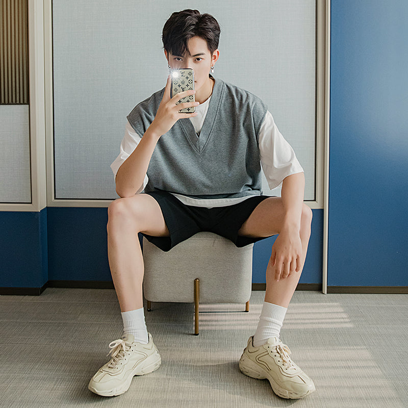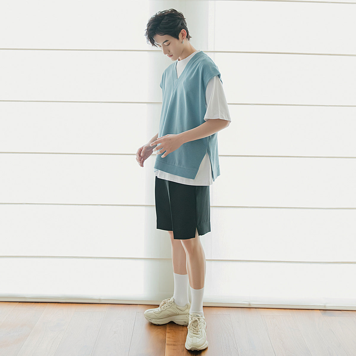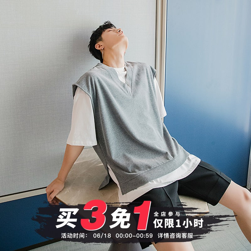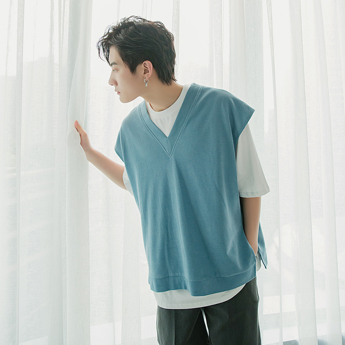 CHIC ERRO Chic Erro summer thin knitted waistcoat sleeveless t-shirt loose men's outer V-neck vest men's trend