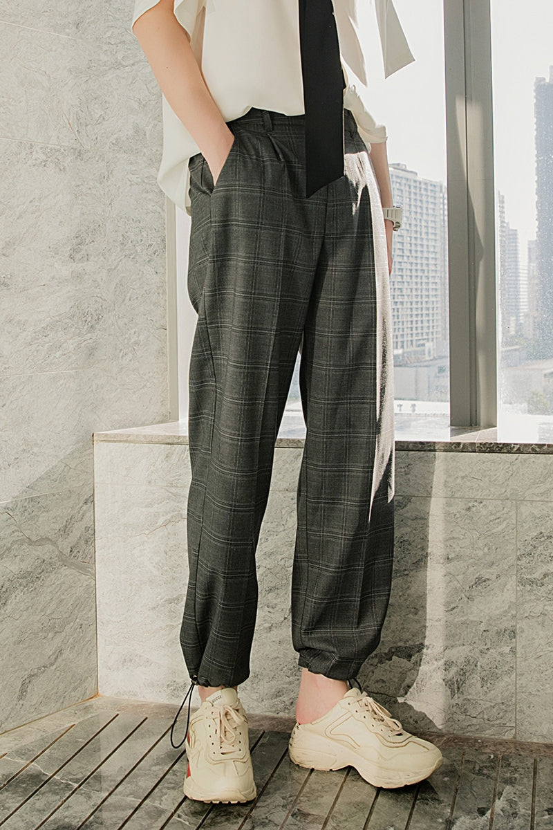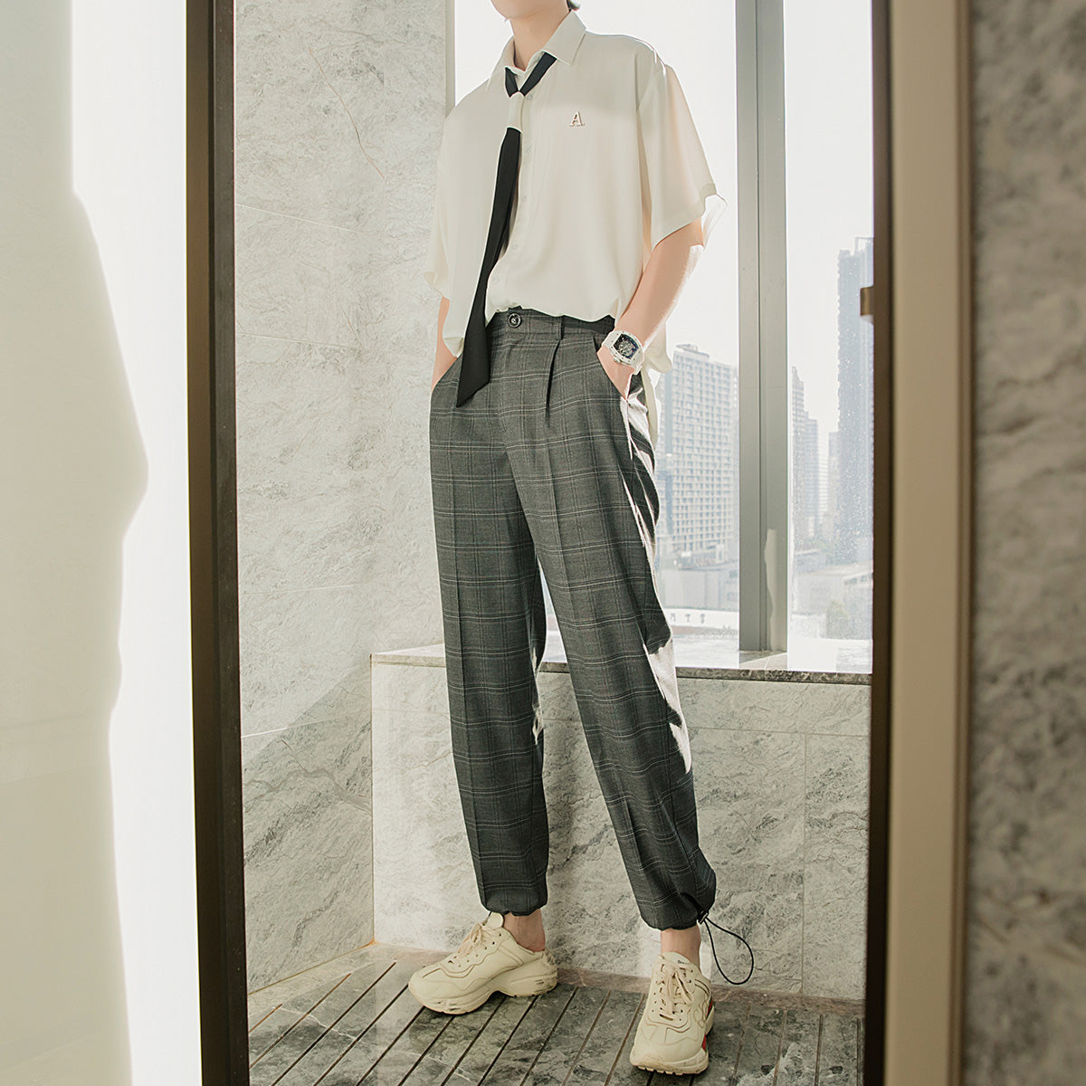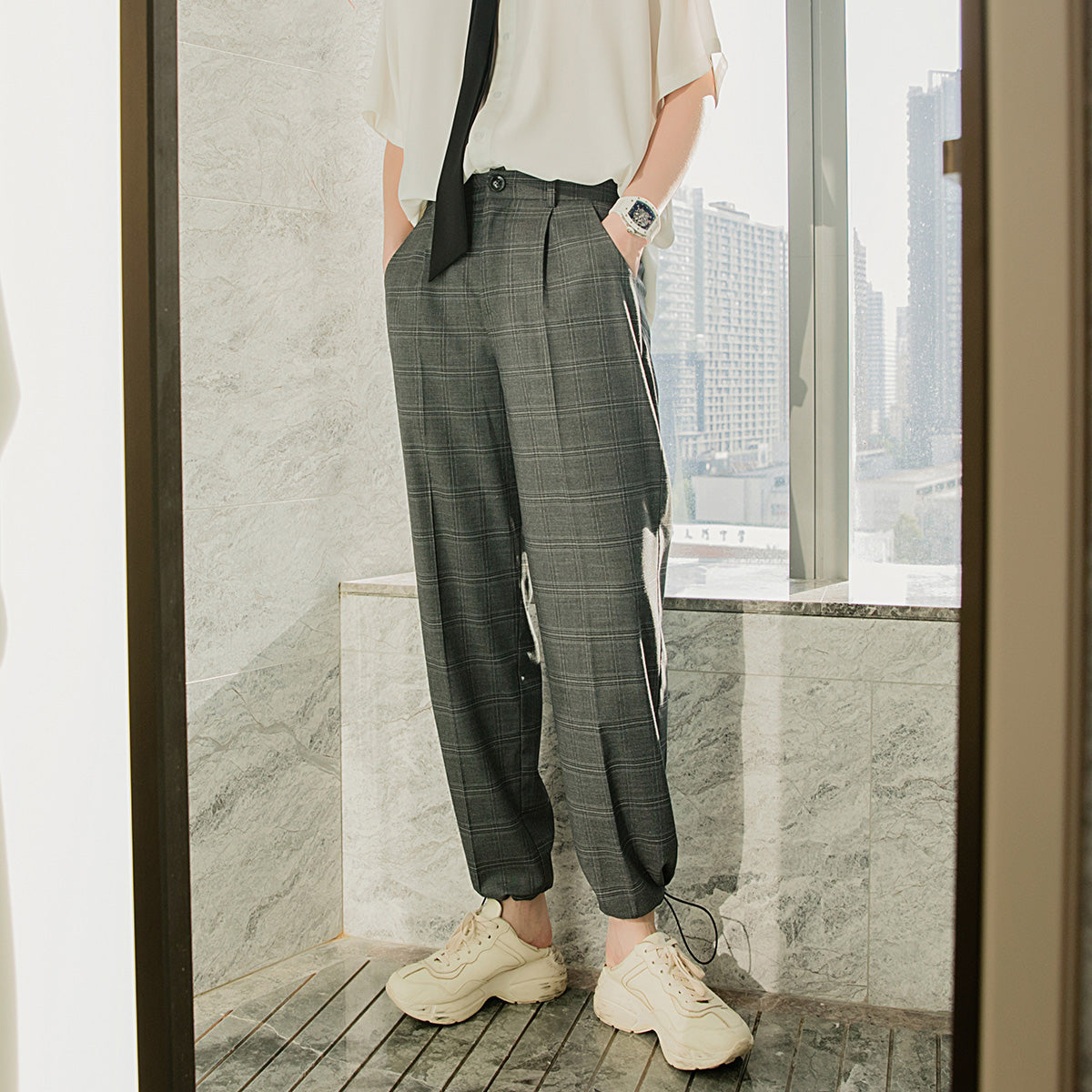 CHIC ERRO Chic Erro summer thin plaid casual pants men's Korean version of the trend loose nine-point wide-leg pants