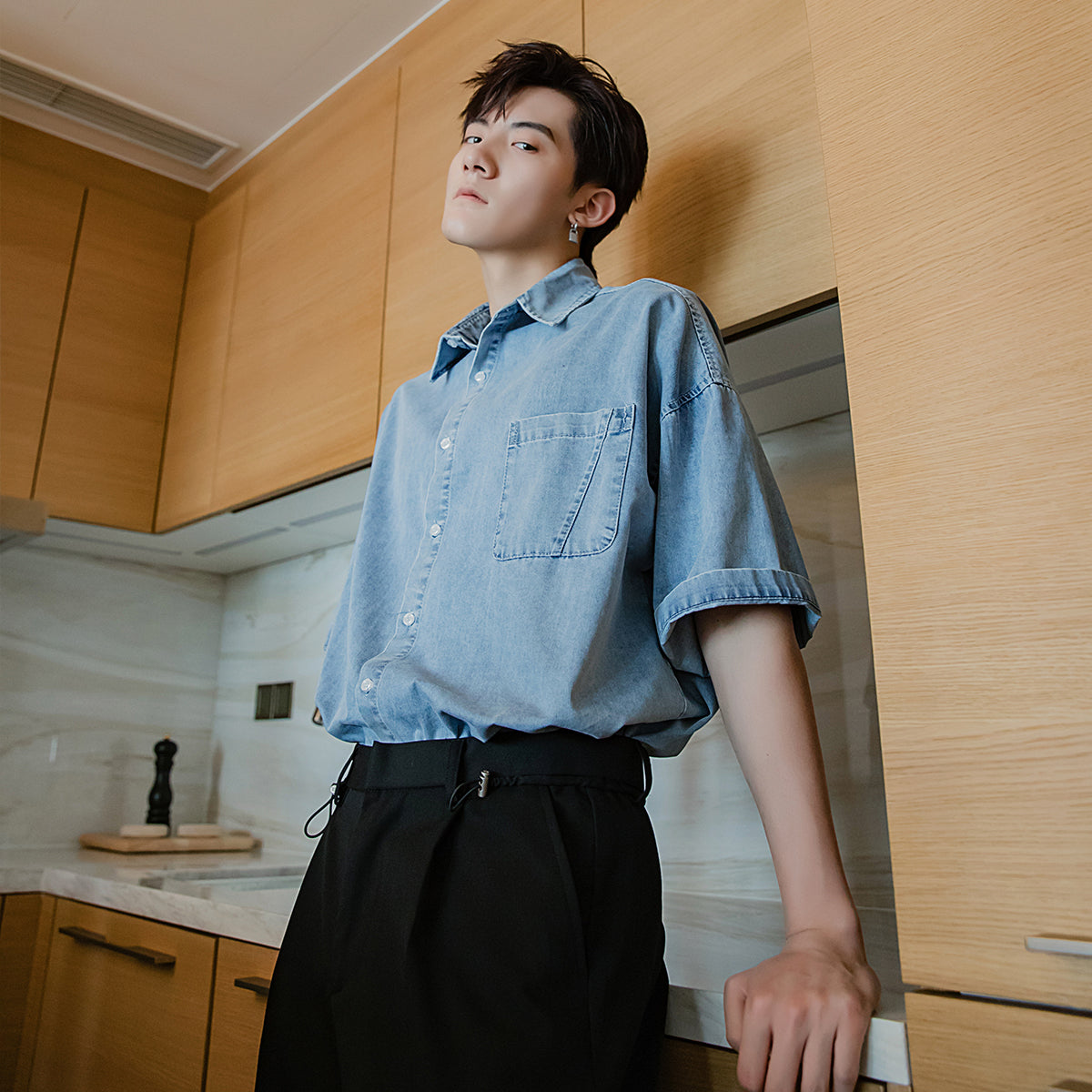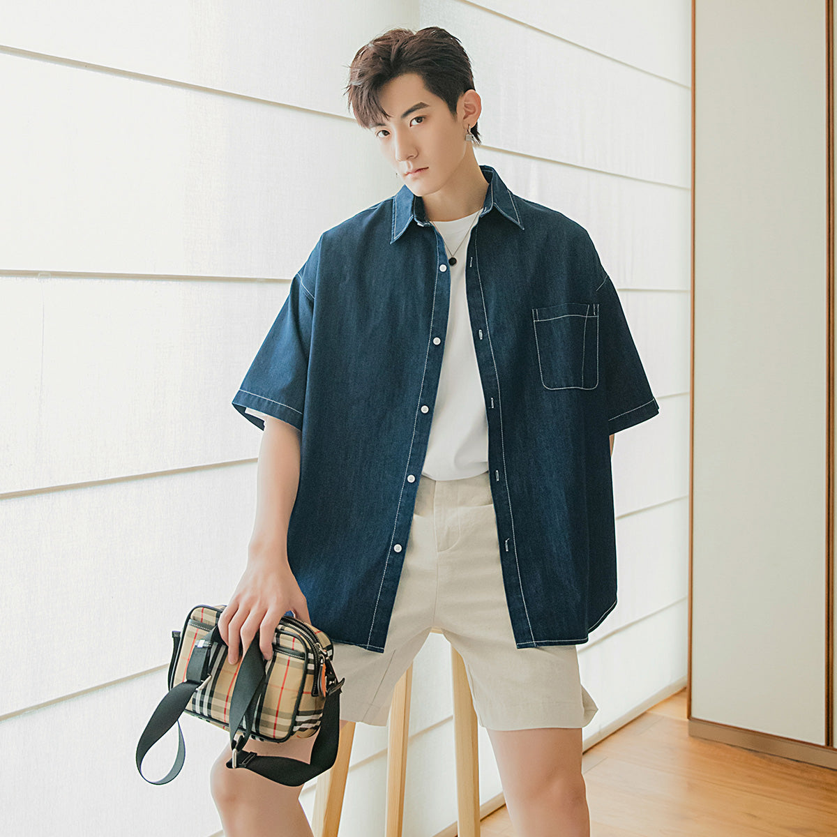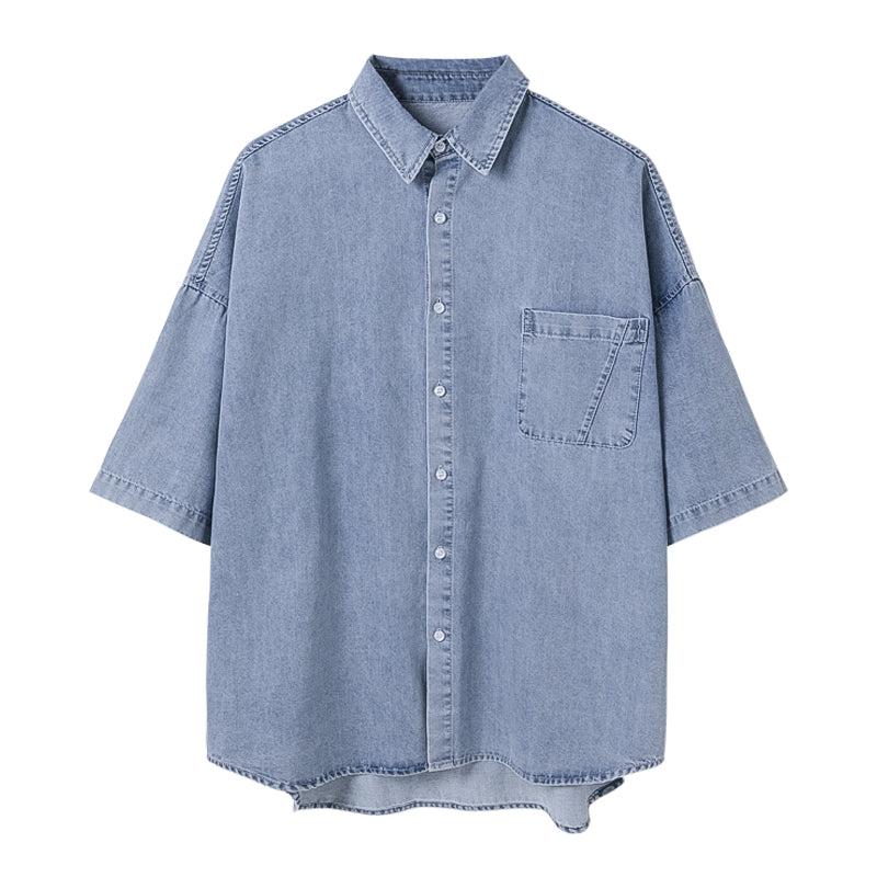 CHIC ERRO Chic Erro summer thin short-sleeved denim shirt male Korean style trendy handsome loose boys half-sleeved shirt