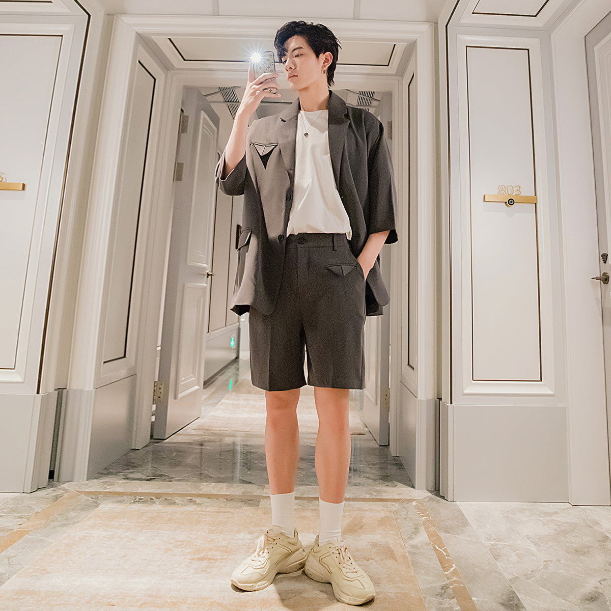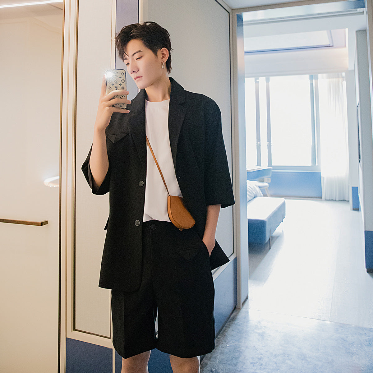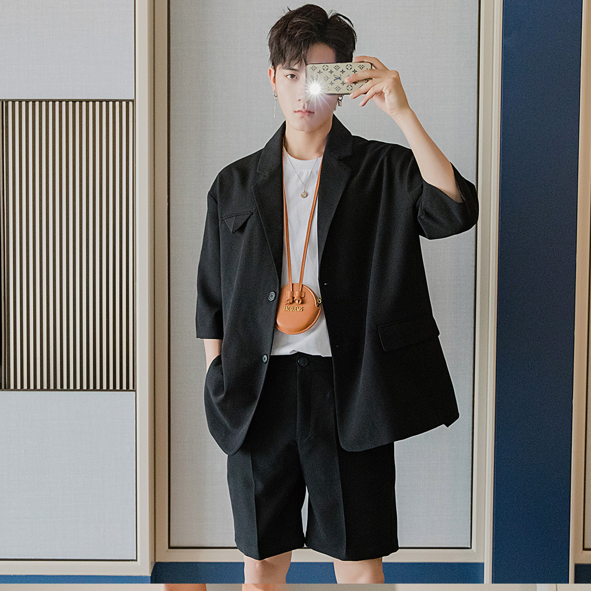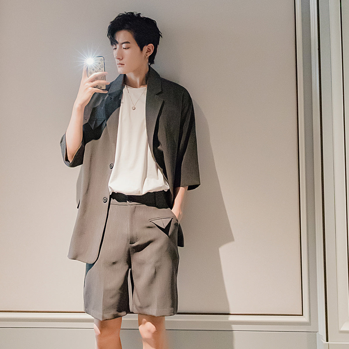 CHIC ERRO Chic Erro summer thin short-sleeved suit jacket male Korean style trend loose men's three-quarter sleeve suit