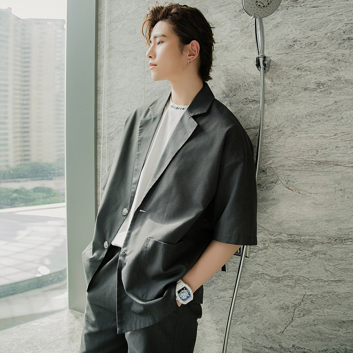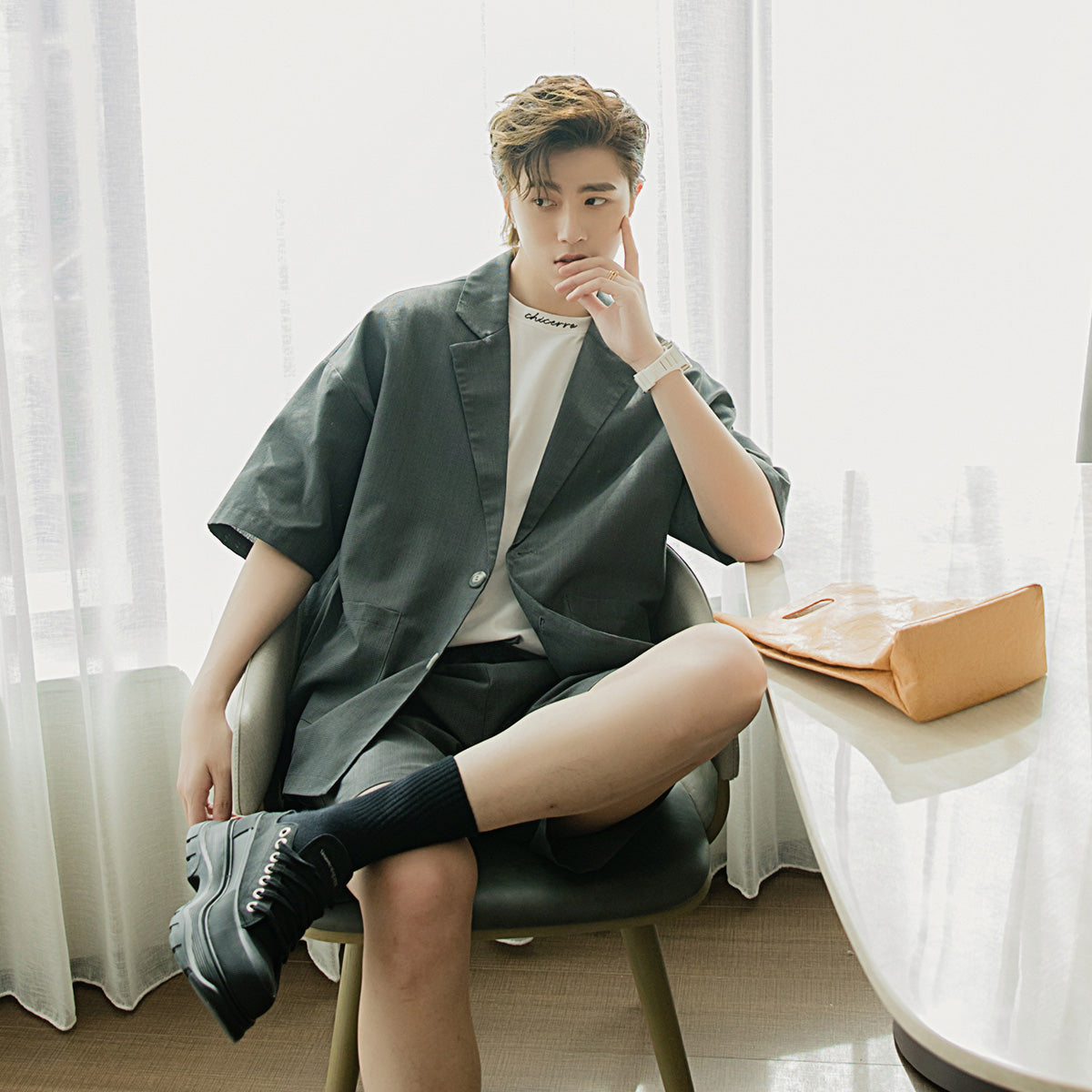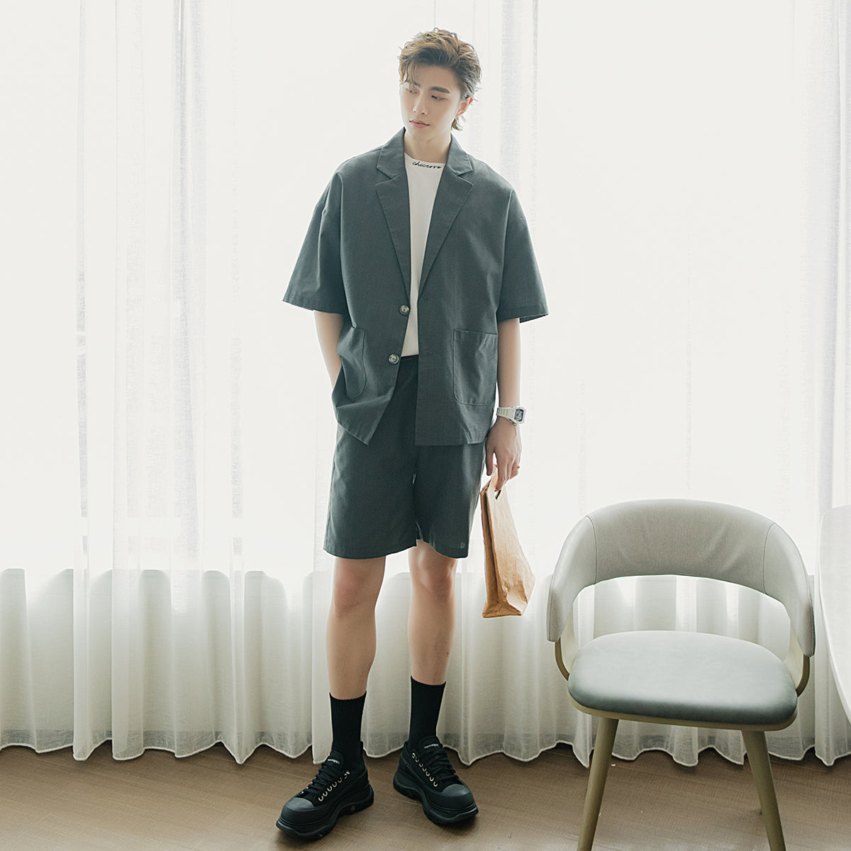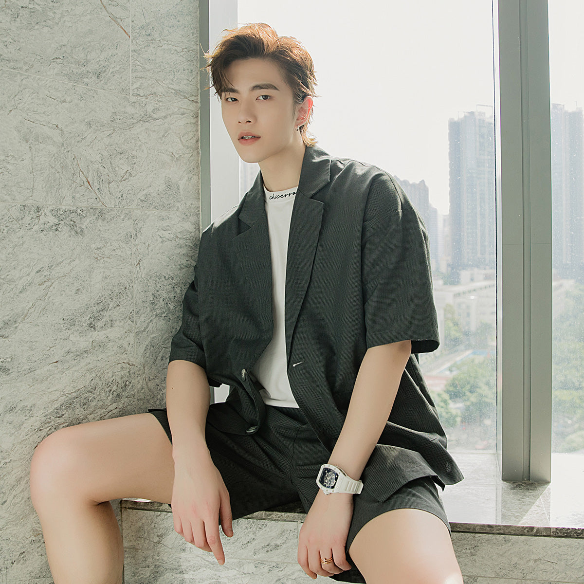 CHIC ERRO Chic Erro summer thin short-sleeved suit jacket shorts two-piece men's Korean suit suit men