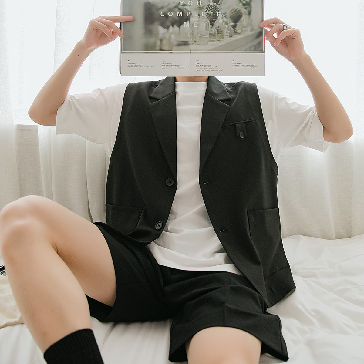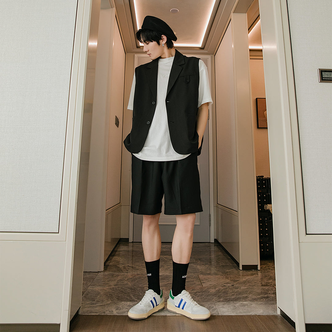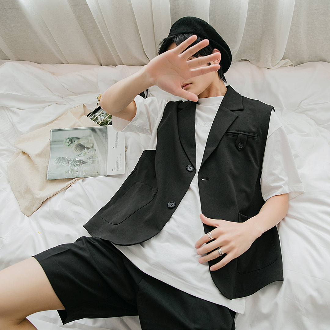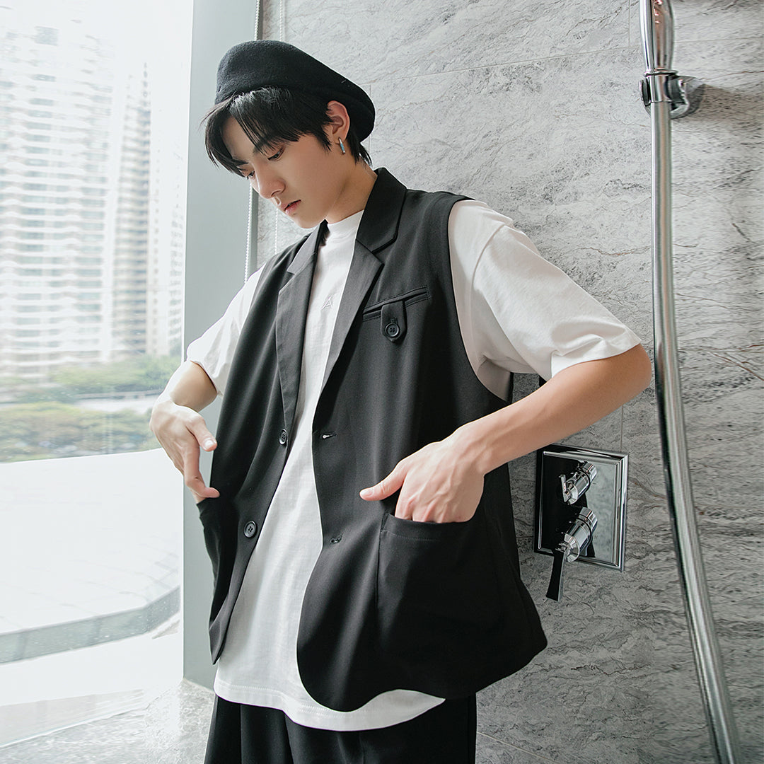 CHIC ERRO Chic Erro summer thin sleeveless suit collar waistcoat vest men's loose waistcoat casual thin jacket