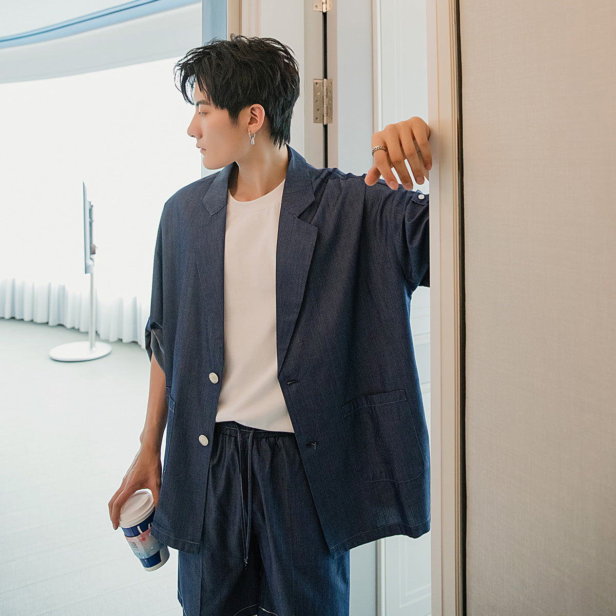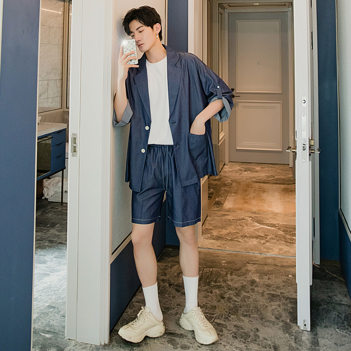 CHIC ERRO Chic Erro summer thin suit jacket shorts two-piece suit men's loose casual suit suit men