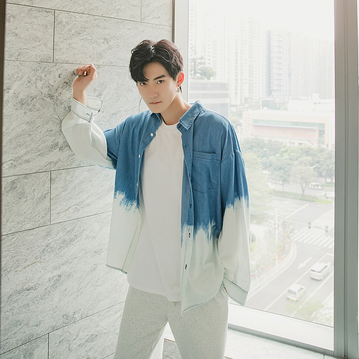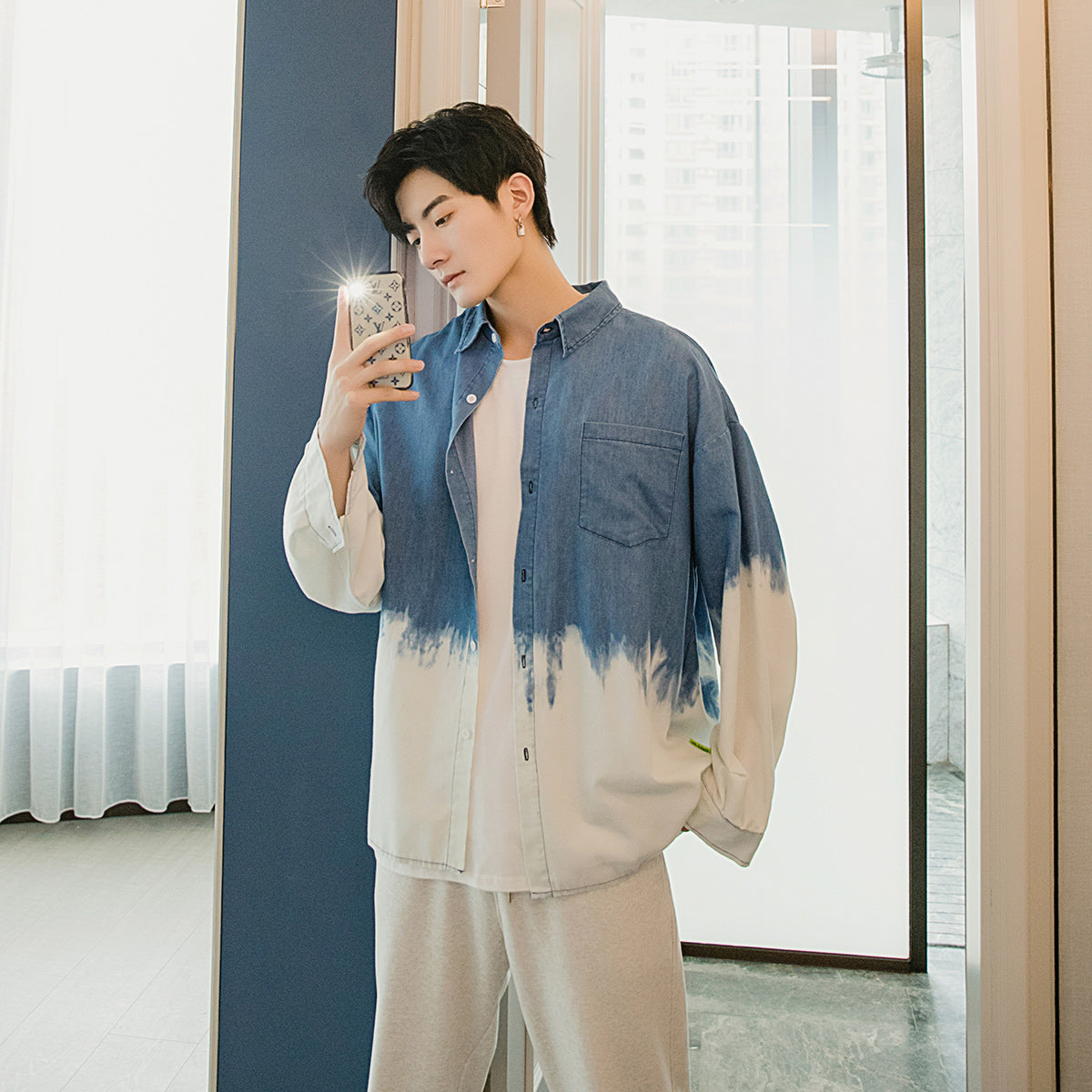 CHIC ERRO Chic Erro summer thin sunscreen shirt tie-dye gradient shirt male Korean version of the trend loose men's shirt