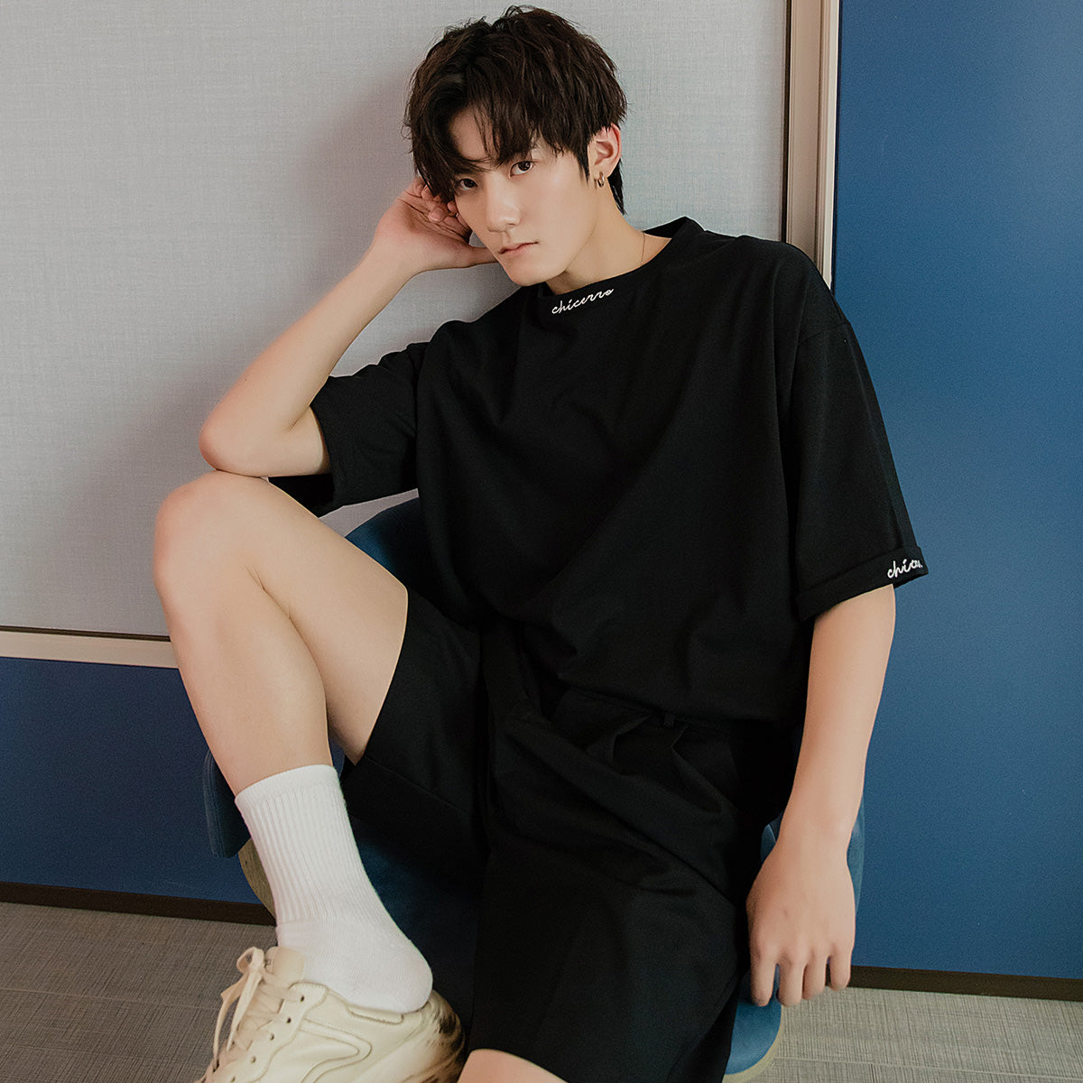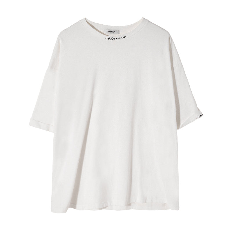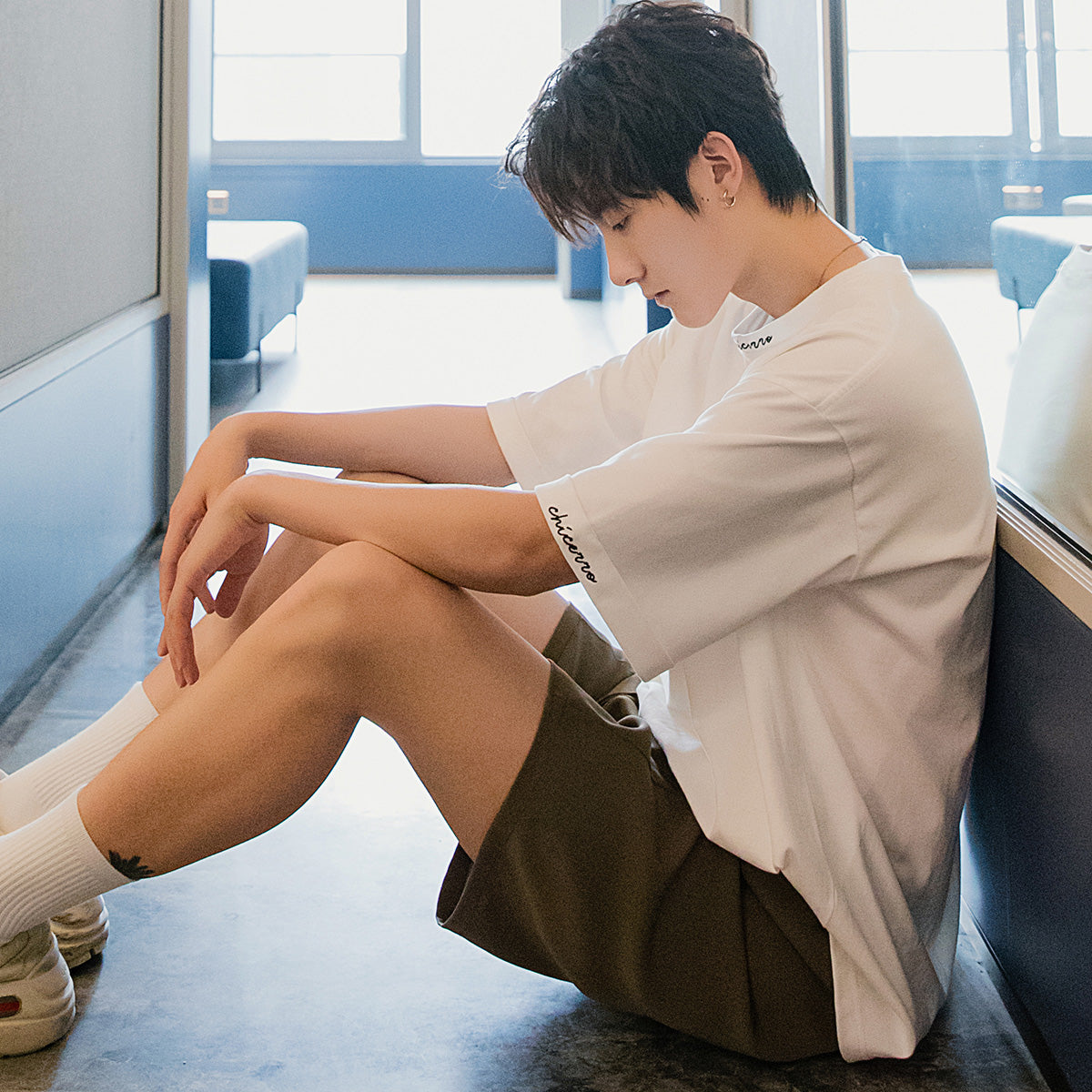 CHIC ERRO Chic Erro summer white half-sleeved men's trend loose five-point sleeve men's embroidered style short-sleeved t-shirt
