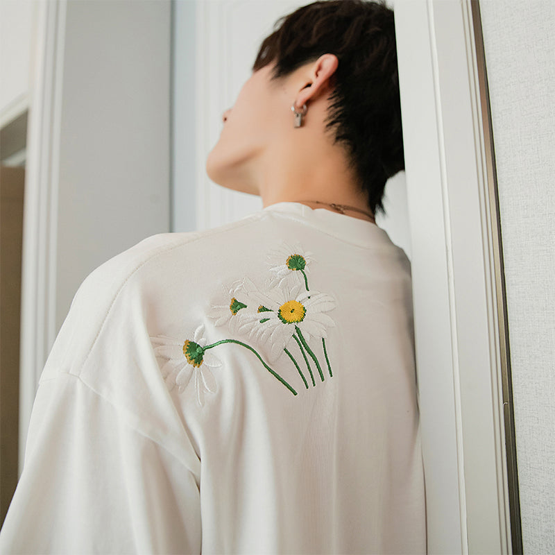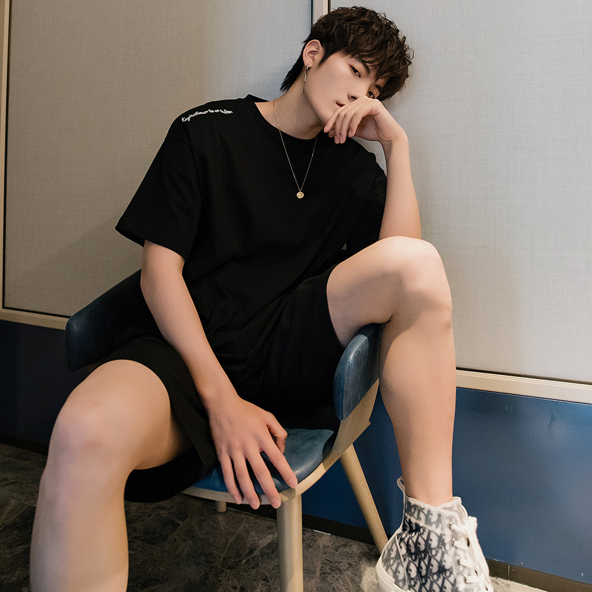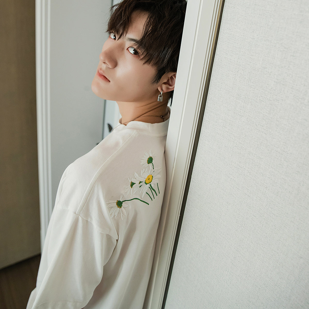 CHIC ERRO Chic Erro summer white short-sleeved men's tide brand trend loose men's five-point sleeve Korean embroidered t-shirt