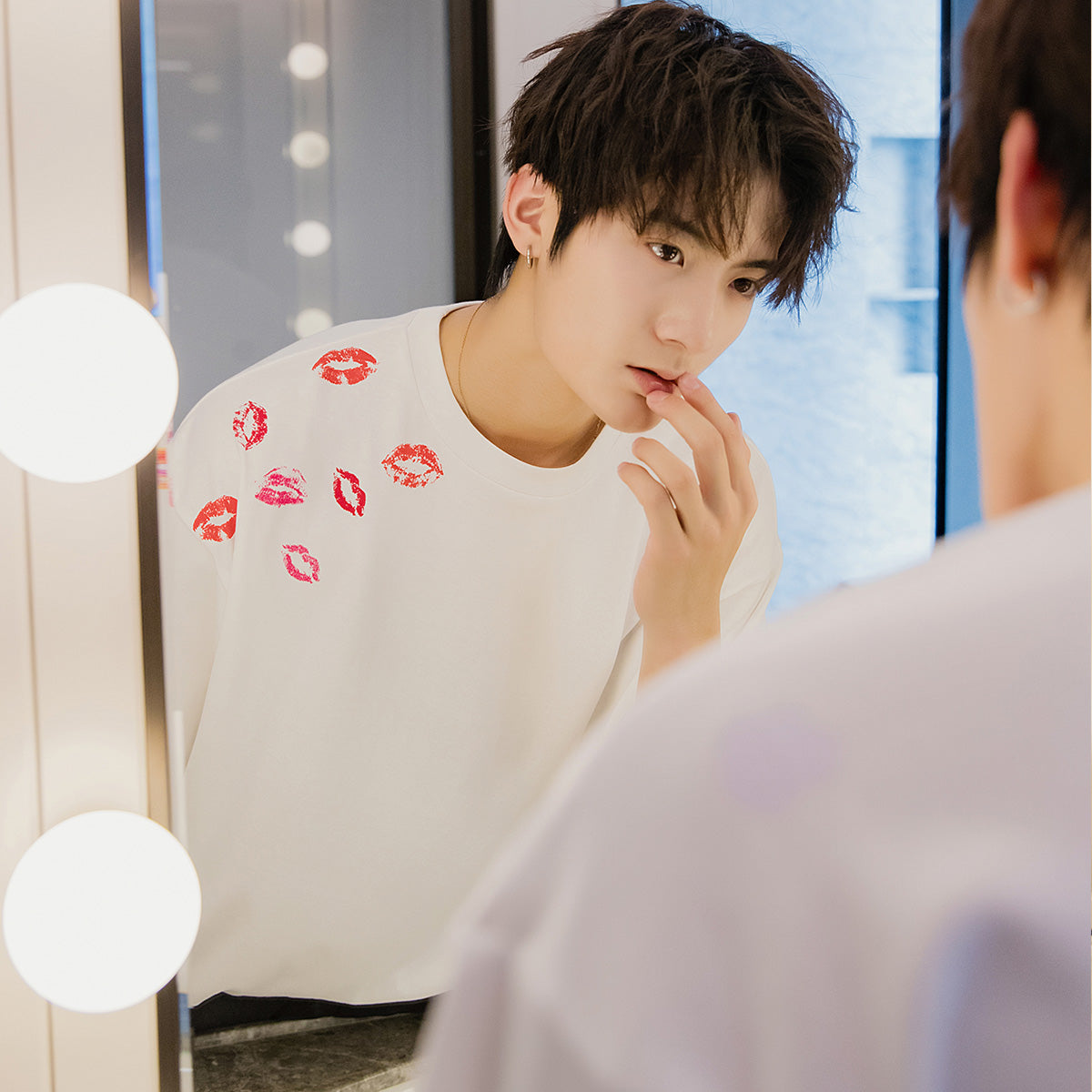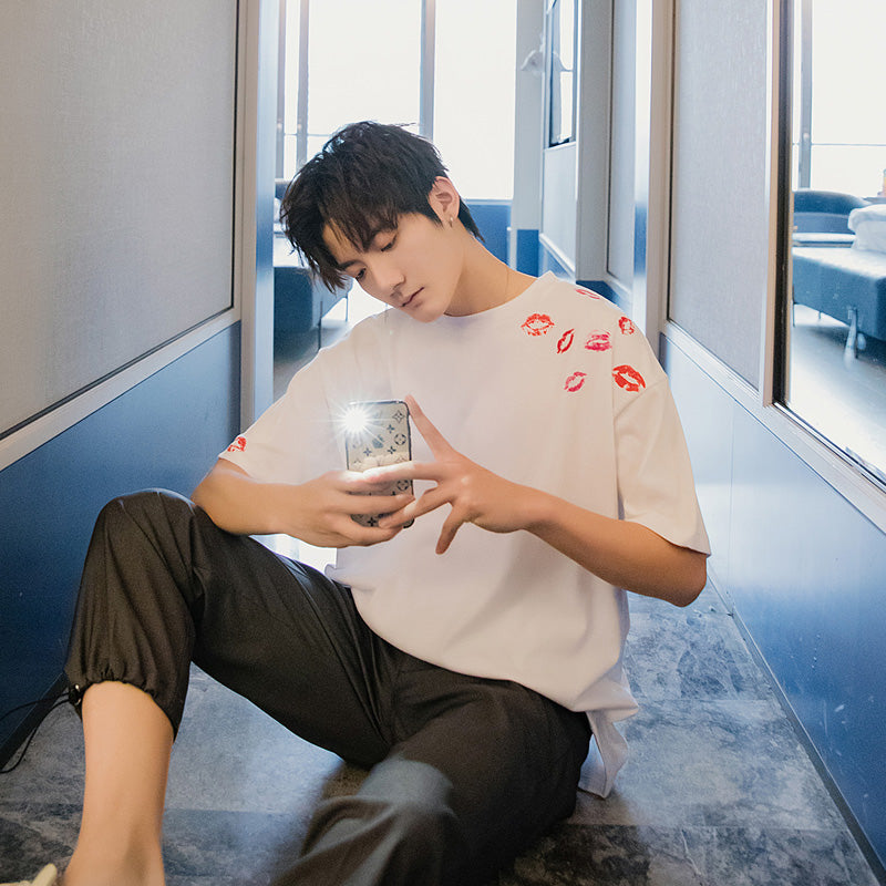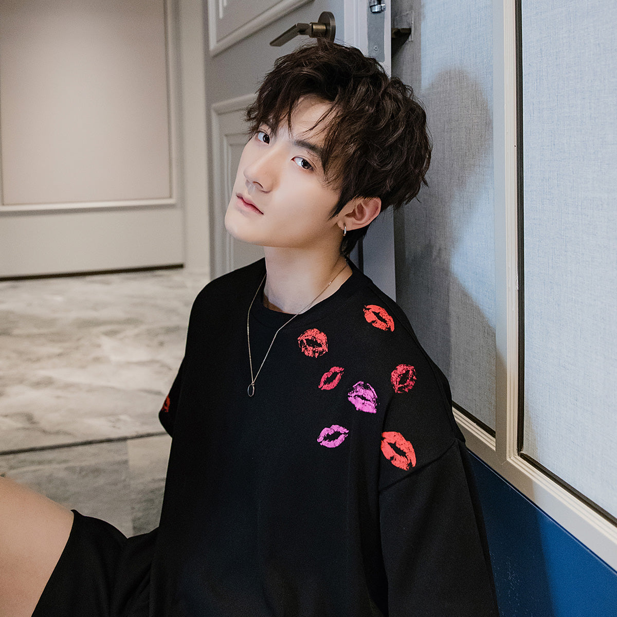 CHIC ERRO Chic Erro summer white short-sleeved men's tide brand trend men's loose five-point sleeve design printed t-shirt