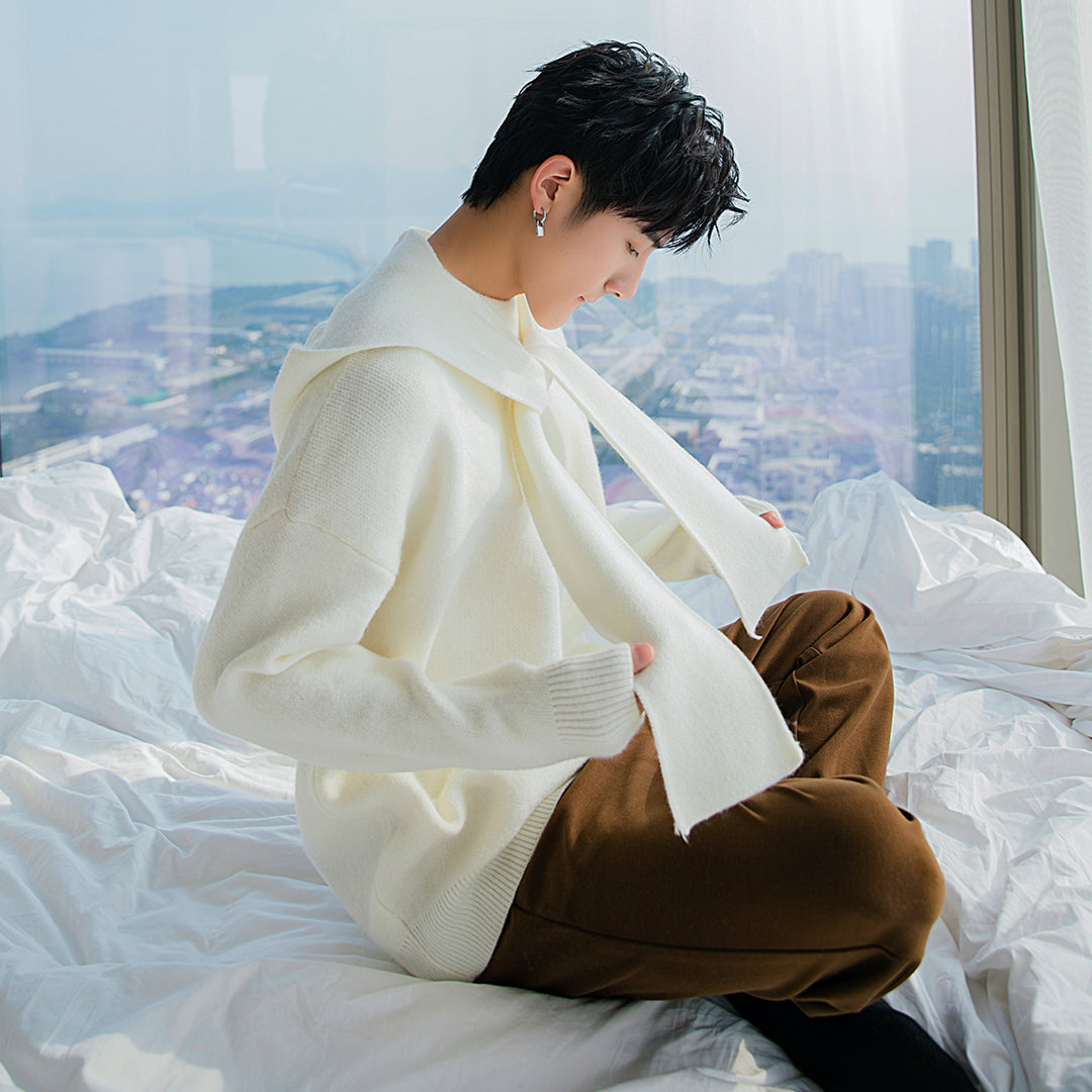 CHIC ERRO Chic Erro sweater hat detachable loose casual all-match college style men's sweater