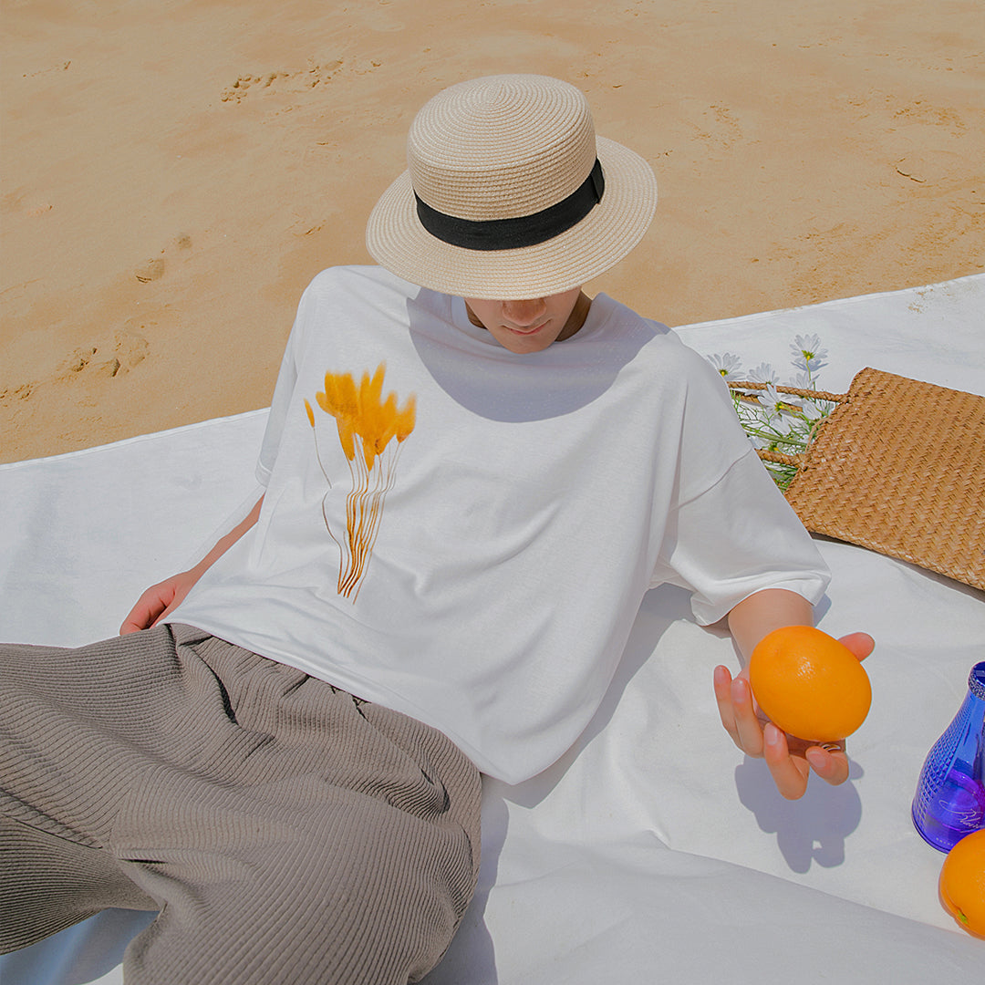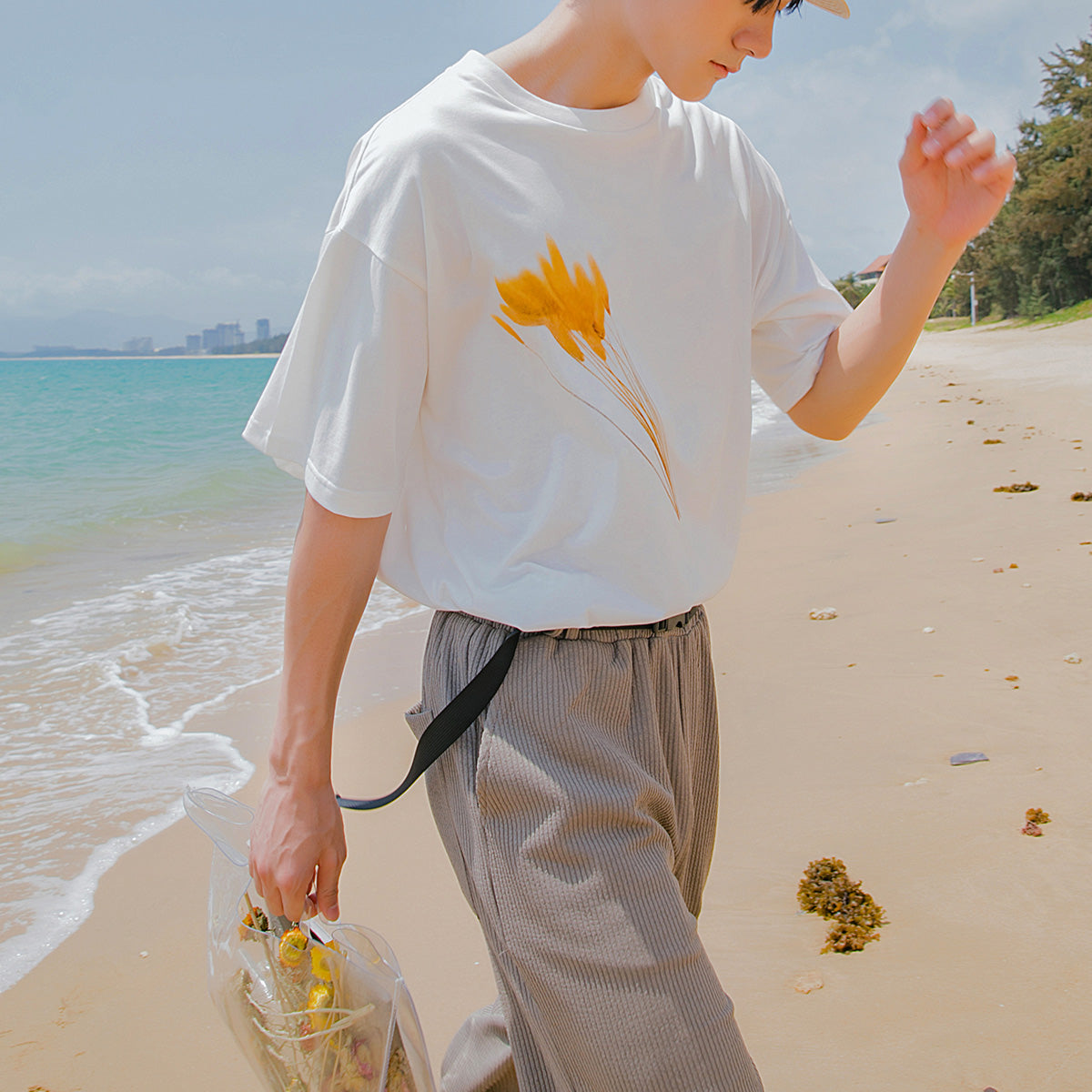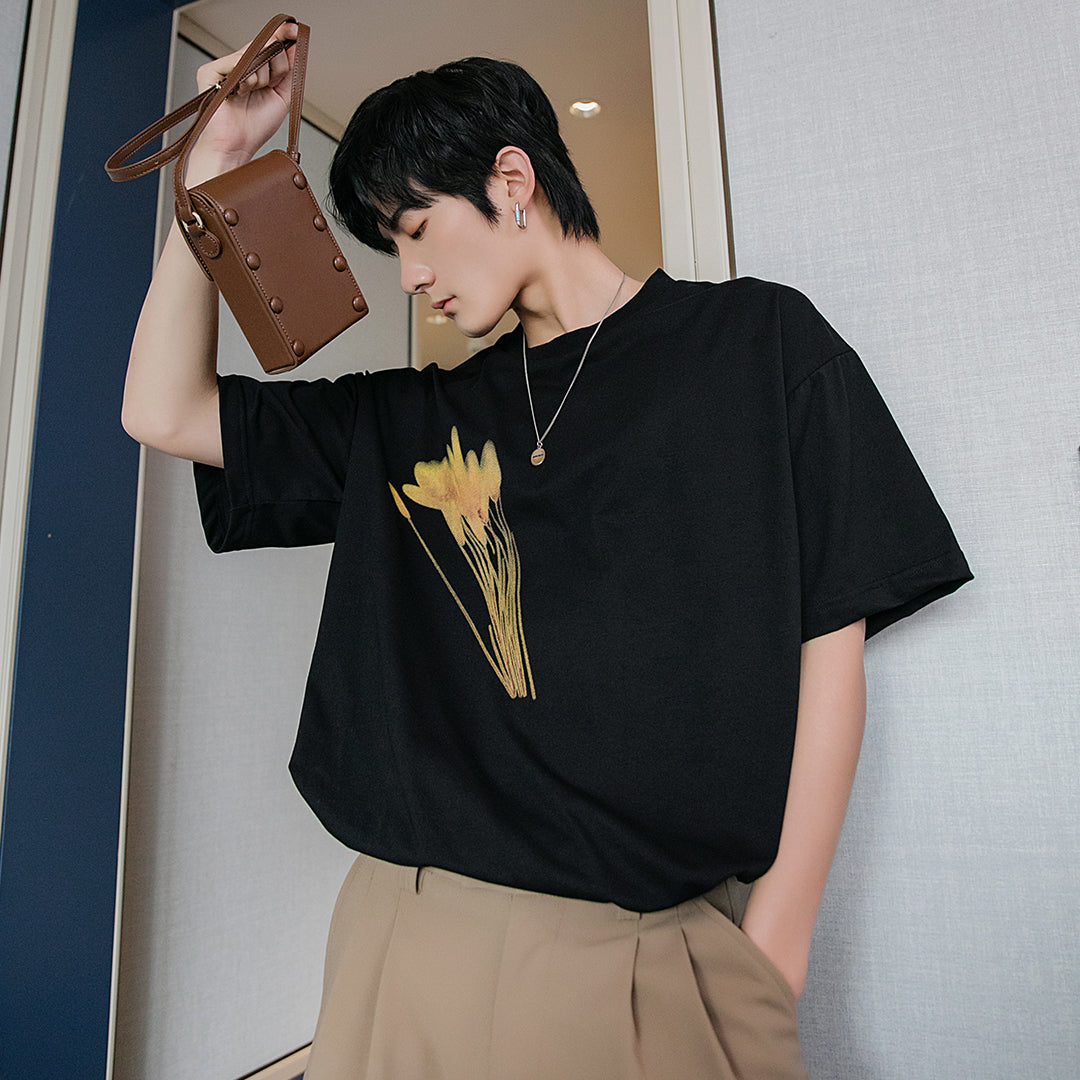 CHIC ERRO Chic Erro t-shirt men's short-sleeved summer round neck casual white shirt youth loose printed t-shirt