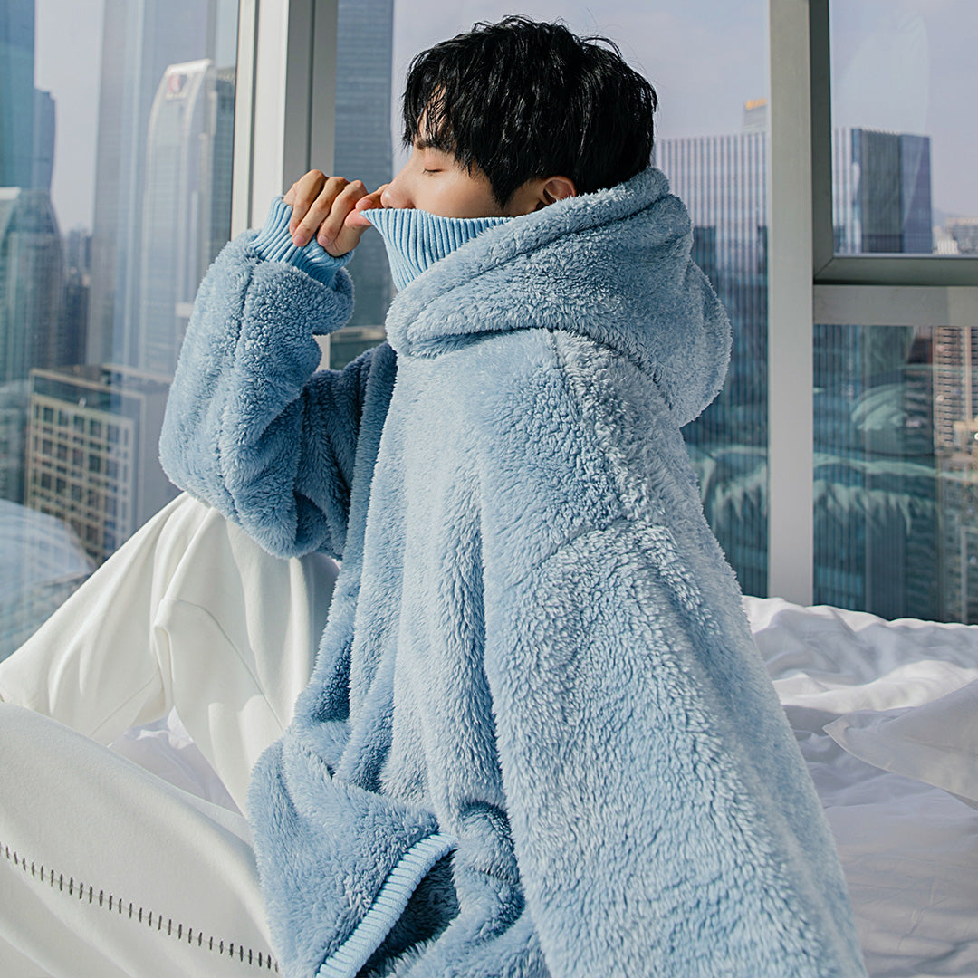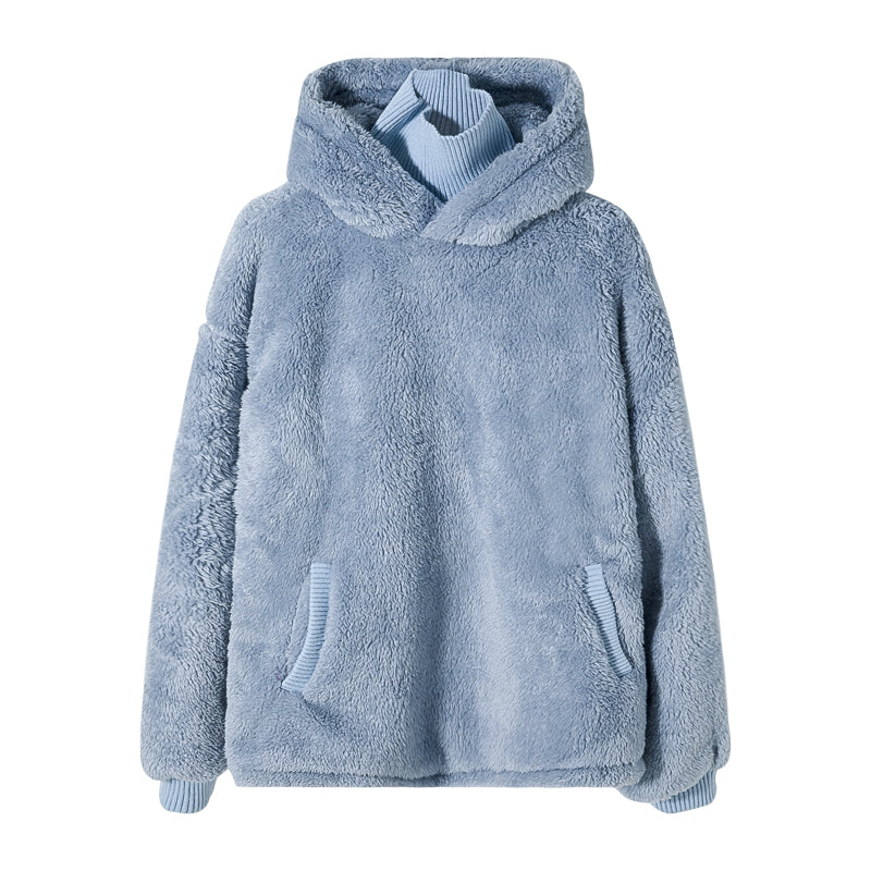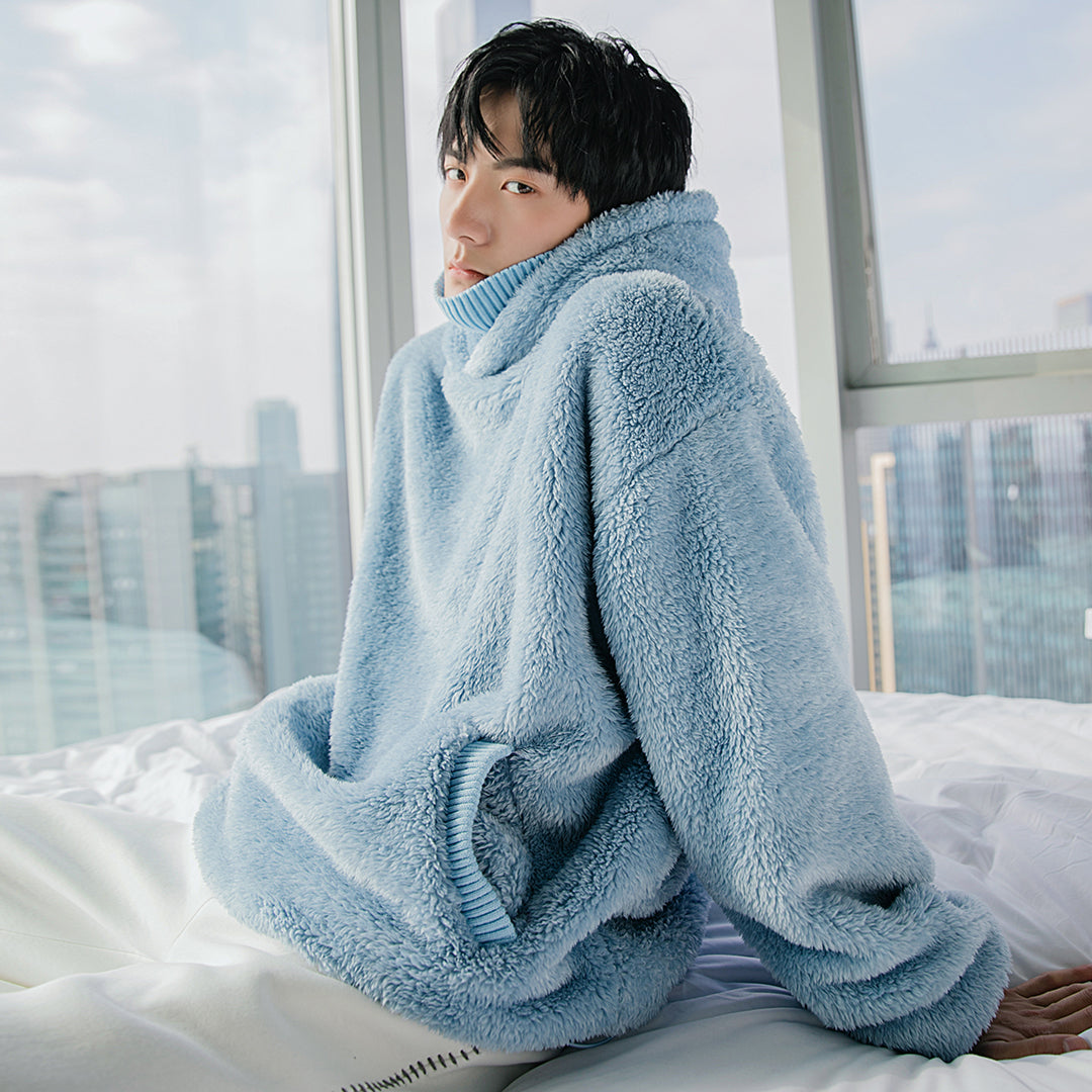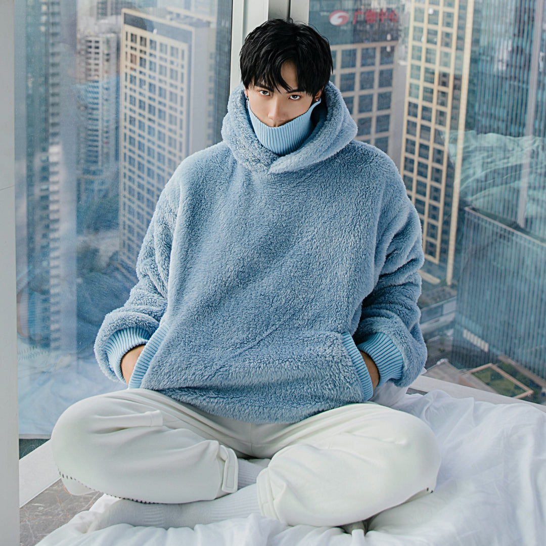 CHIC ERRO Chic Erro thick lamb velvet hooded sweater trend loose fake two-piece high-necked shirt men