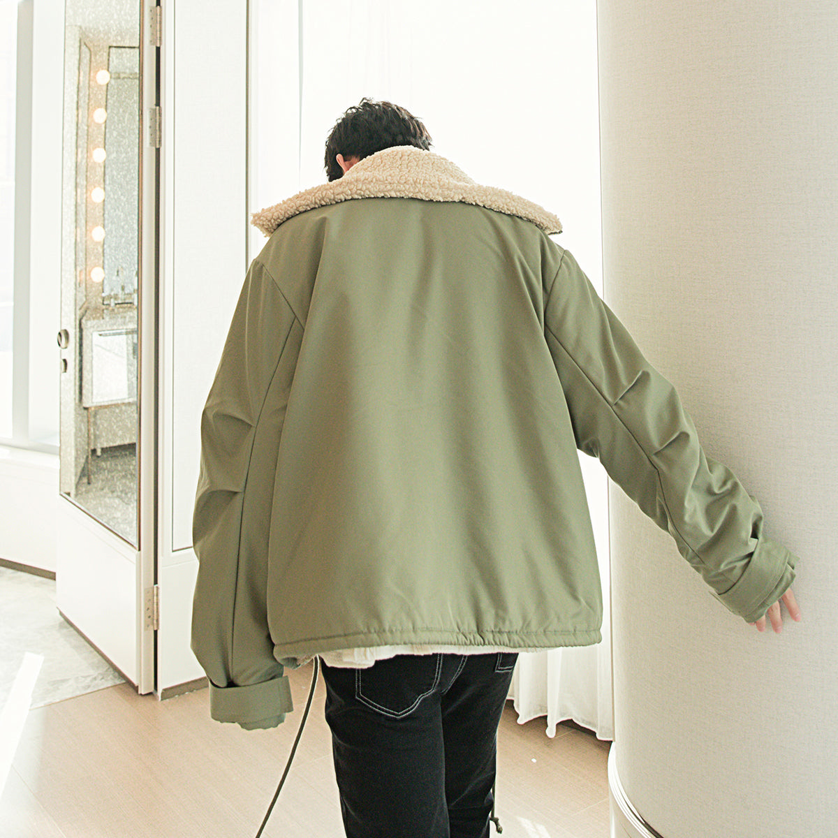 CHIC ERRO Chic Erro thick lamb wool stand-up collar cotton-padded jacket Korean version of the trend of men's loose jacket men's tide autumn and winter