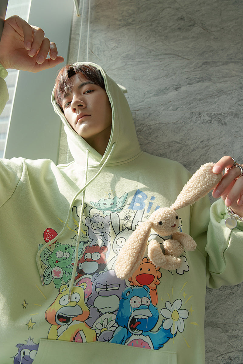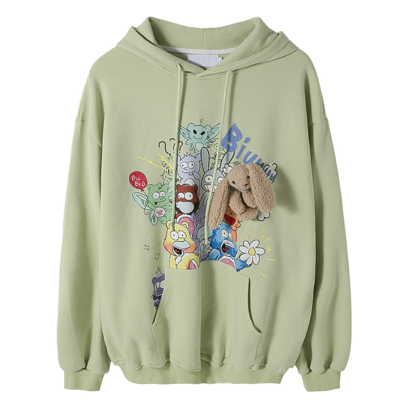 CHIC ERRO Chic Erro three-dimensional rabbit doll men's autumn jacket cute cartoon print rabbit ears hooded sweater