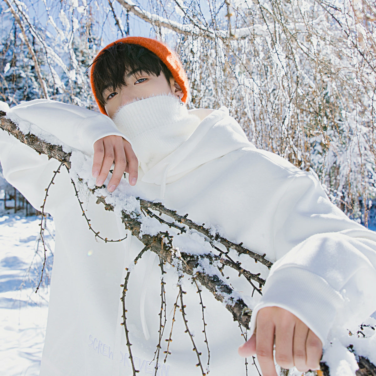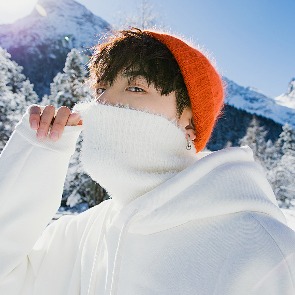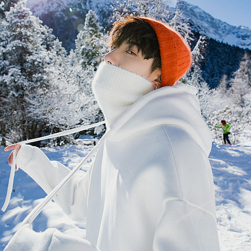 CHIC ERRO Chic Erro trendy loose top men's autumn knit stitching and velvet high-neck hooded sweater men