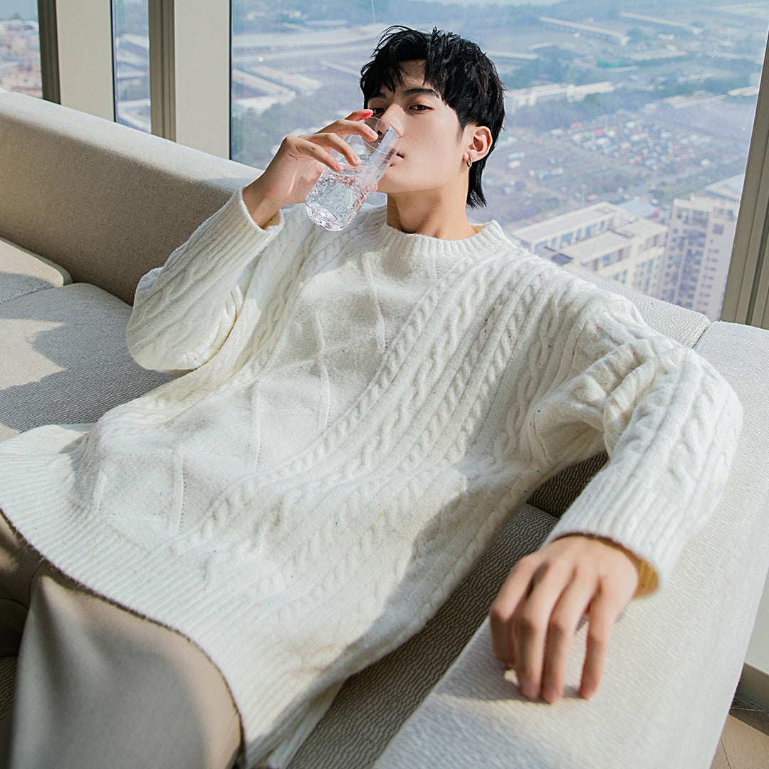 CHIC ERRO Chic Erro twist round neck sweater loose casual all-match college style pullover sweater men
