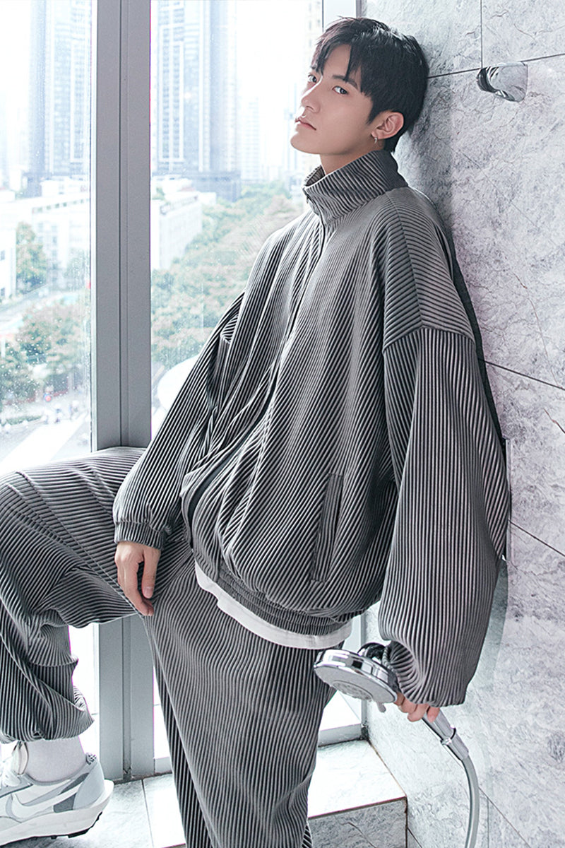 CHIC ERRO Chic Erro velvet handsome fashion stand-up collar jacket loose sweatpants men's casual suit two-piece suit