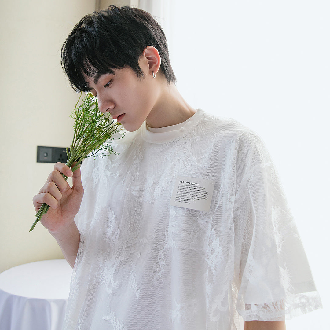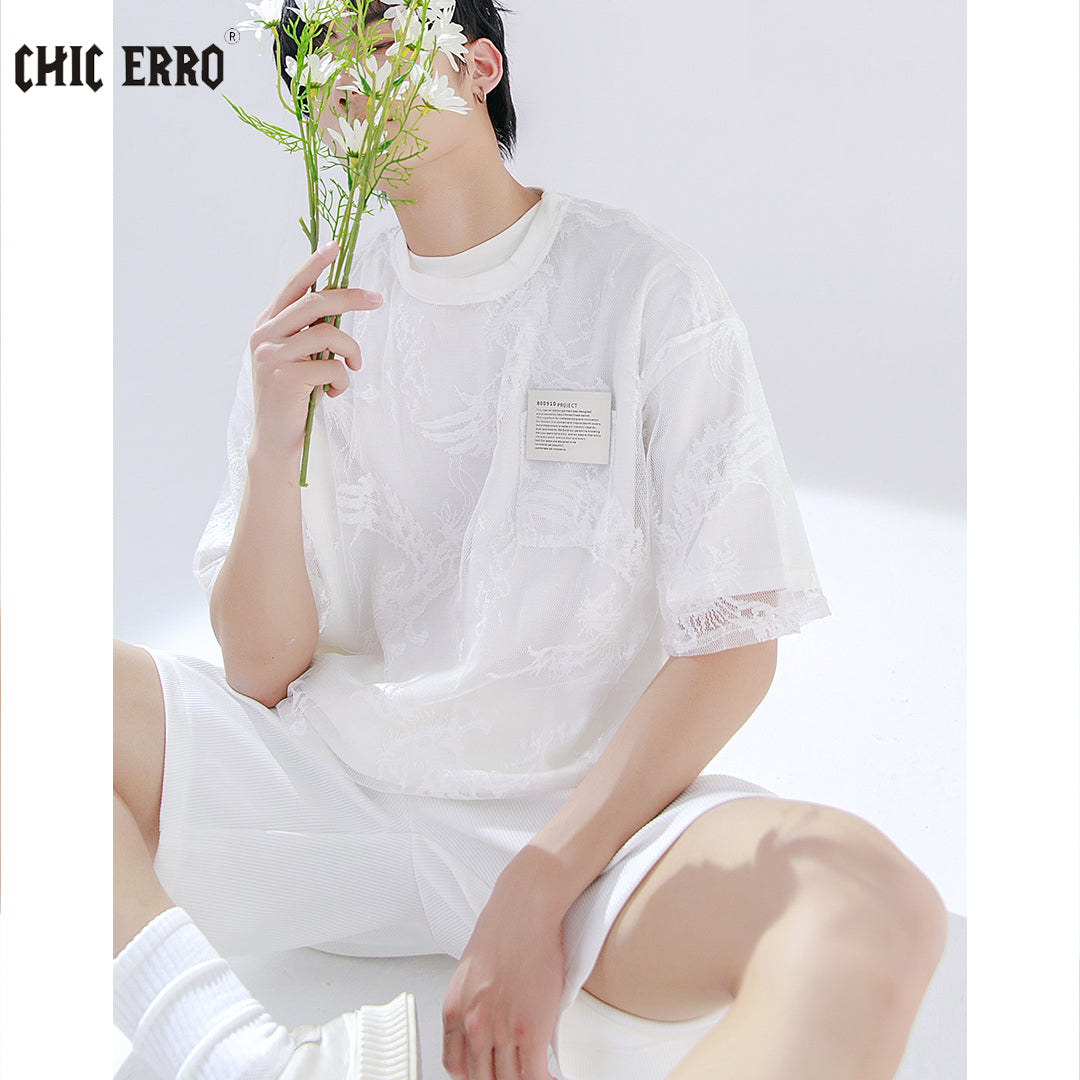 CHIC ERRO Chic Erro wear 2021 new summer mesh short-sleeved T-shirt men's loose handsome trend thin blouse