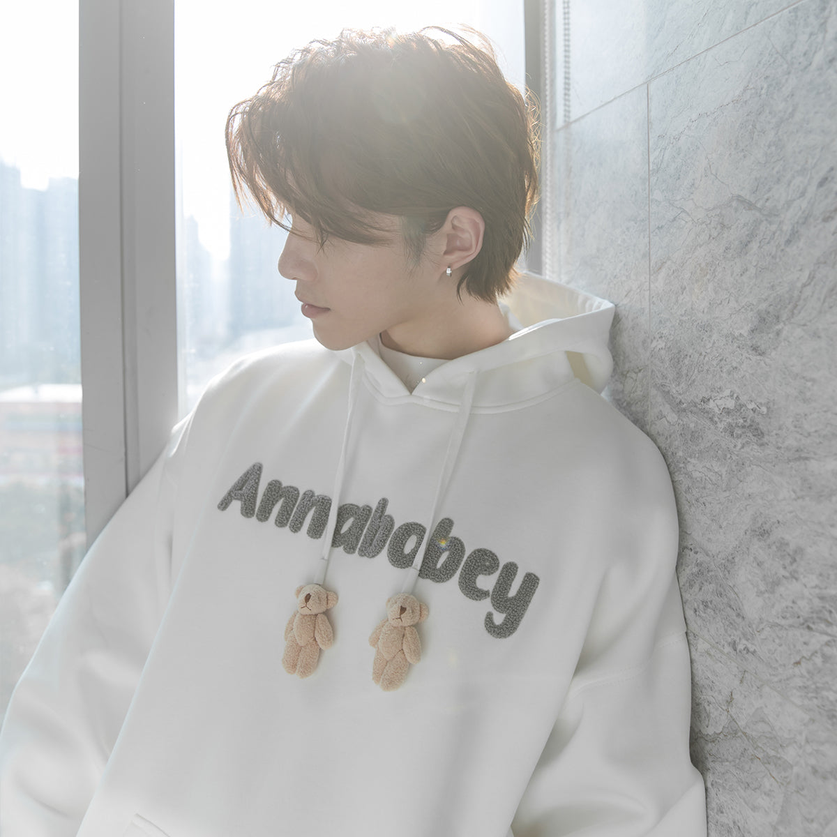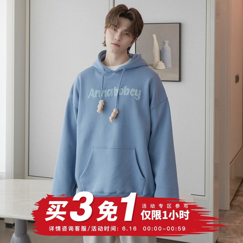 CHIC ERRO Chic Erro wear spring 2020 lazy bear decoration flocking letter sweater men's hooded loose wild