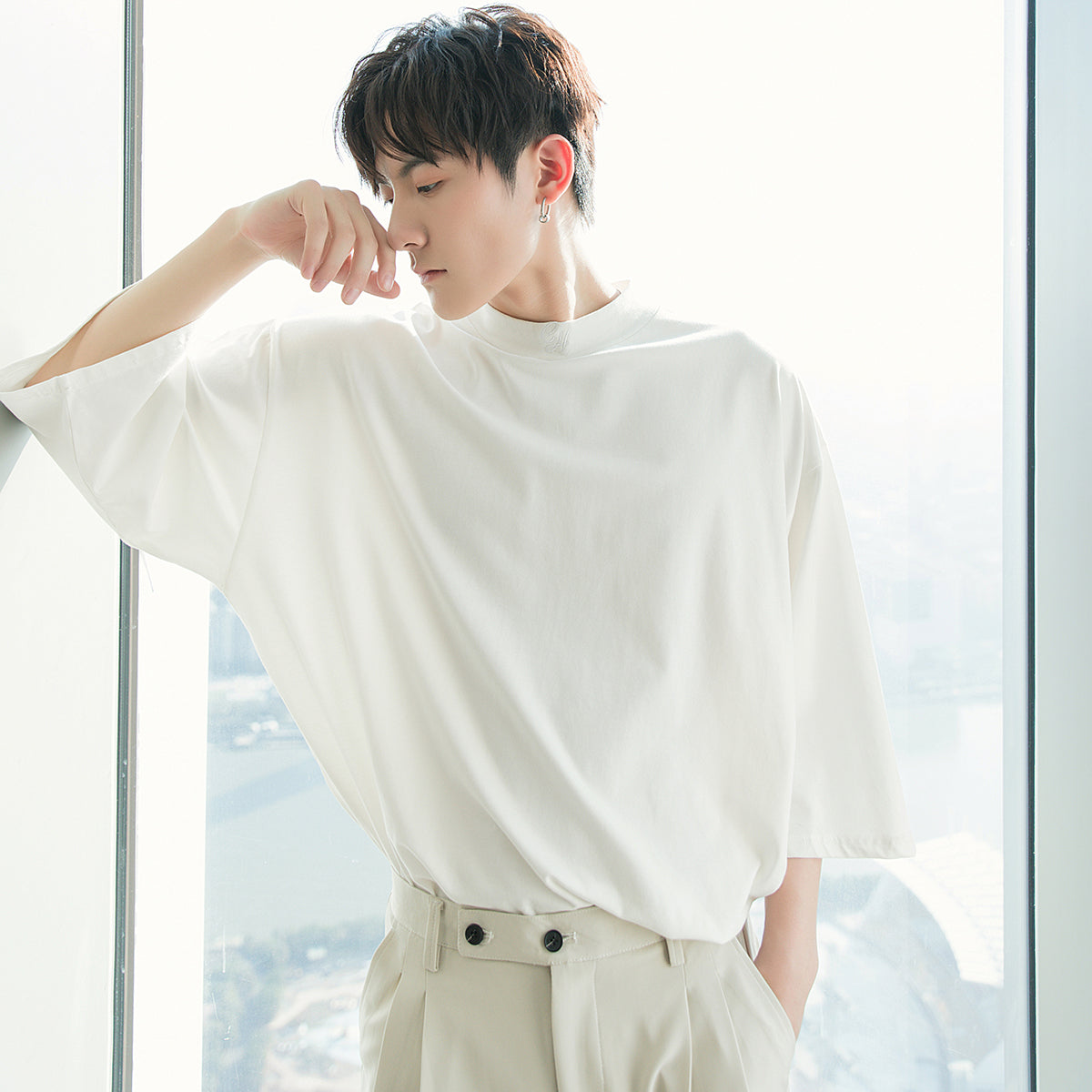 CHIC ERRO Chic Erro wear white bottoming shirt loose men's three-quarter sleeve men's Korean style trend short-sleeved t-shirt in spring