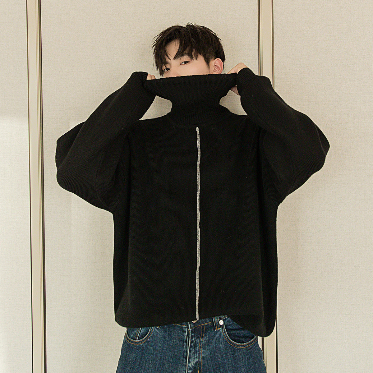 CHIC ERRO Chic Erro white bottoming shirt Korean version of the trend of men's lazy wind loose thick turtleneck sweater men