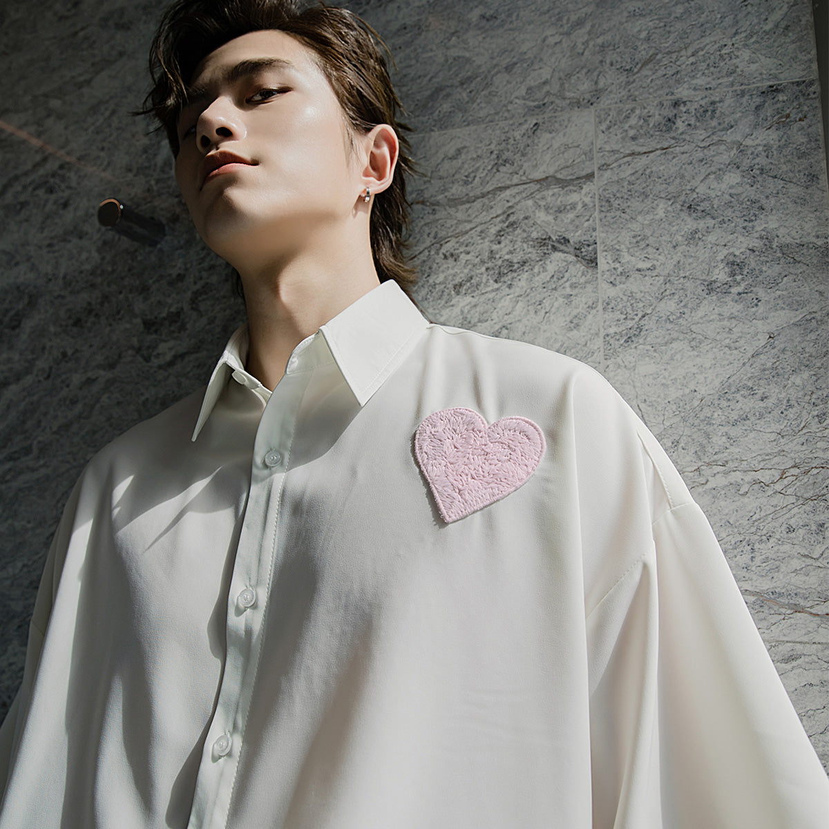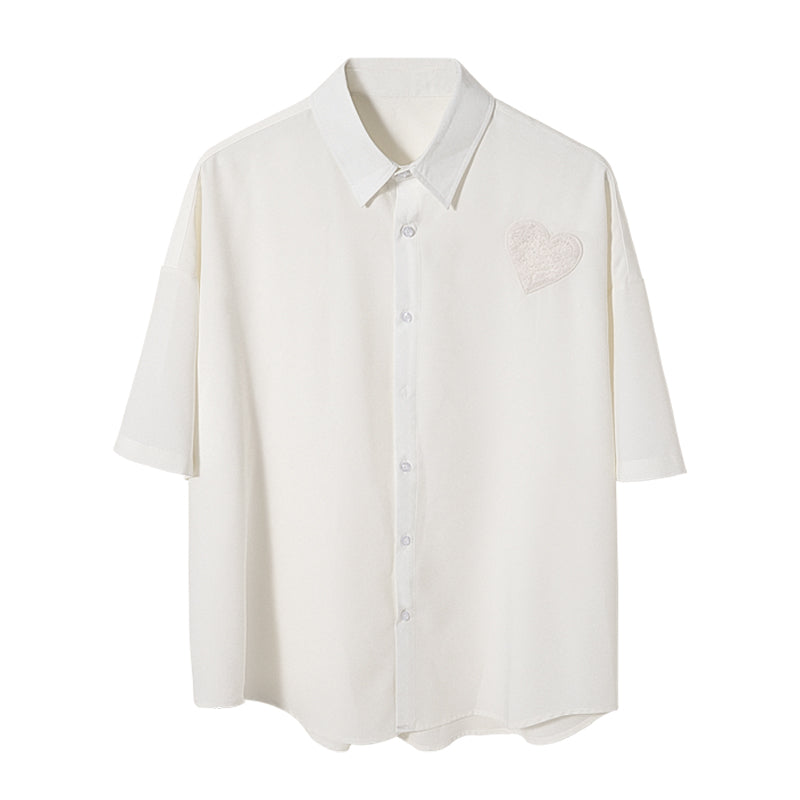 CHIC ERRO Chic Erro white ice silk short-sleeved shirt men's Korean version of the trend loose color embroidery men's white shirt