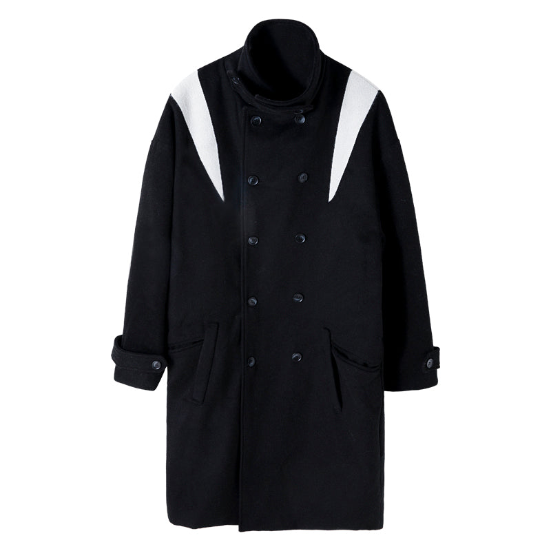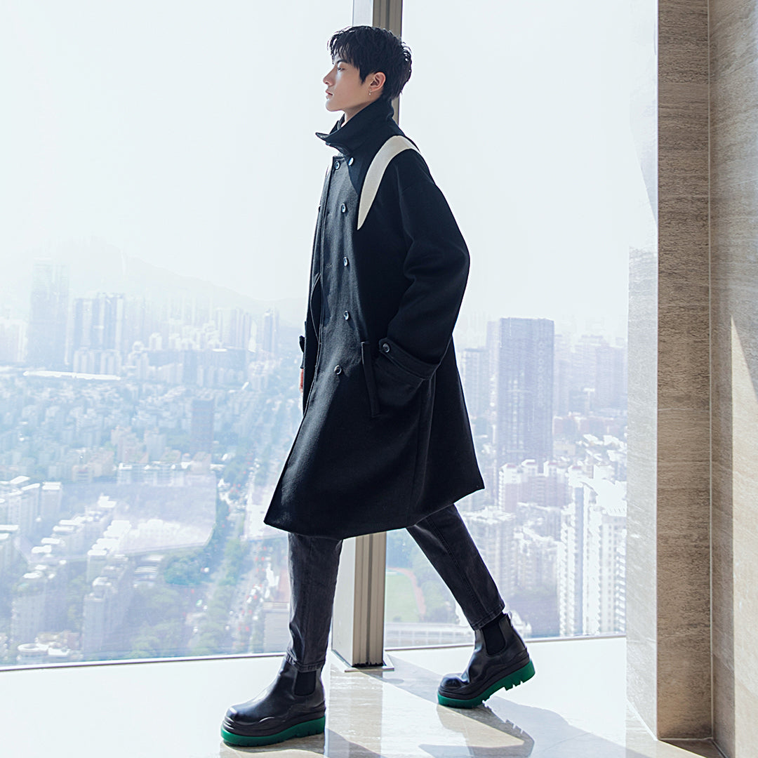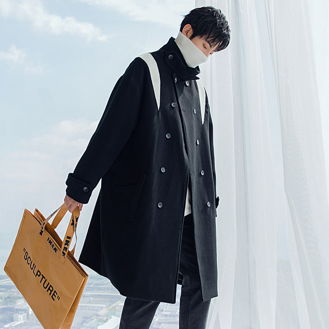 CHIC ERRO Chic Erro winter Japanese style loose handsome jacket contrast color stand-up collar double-breasted mid-length woolen coat