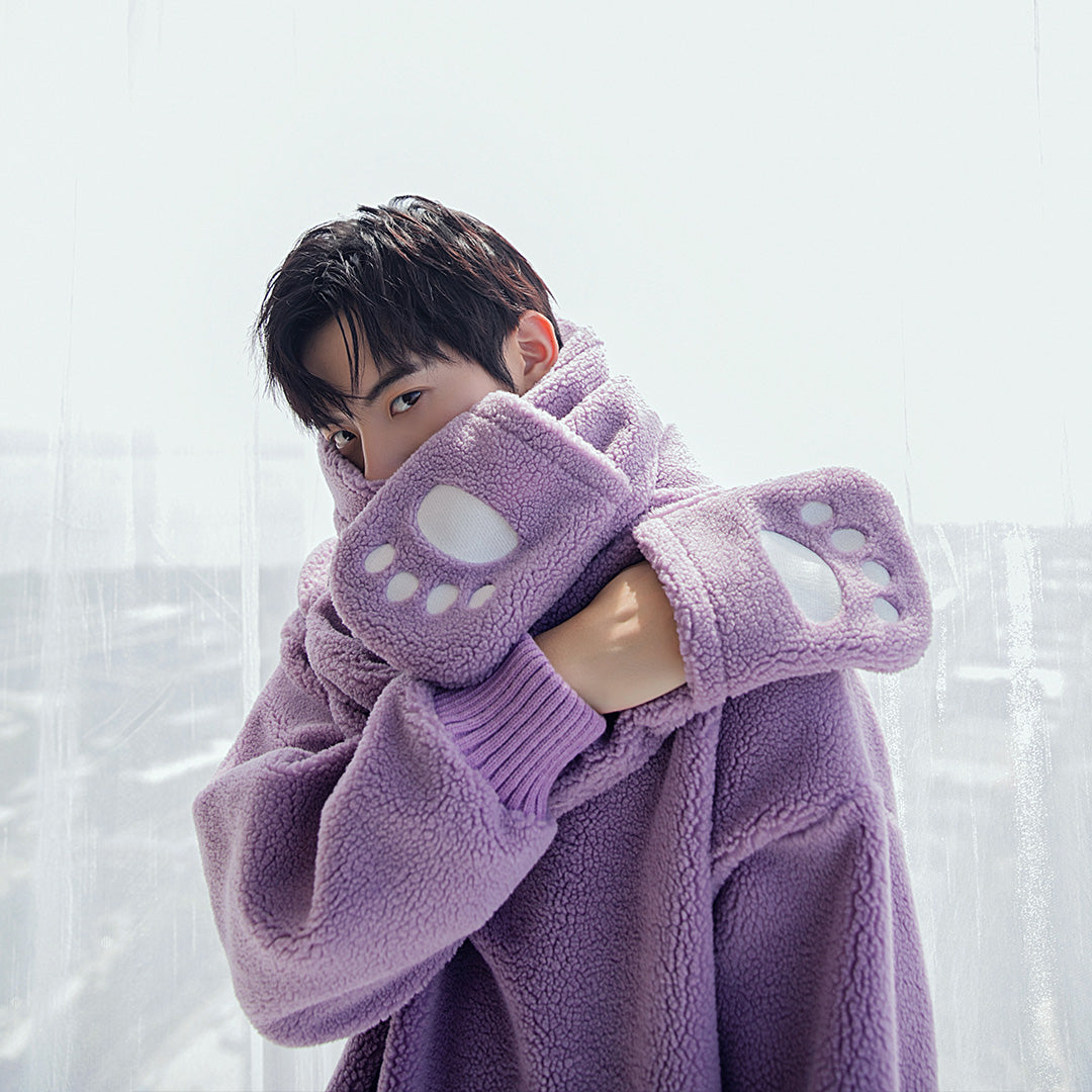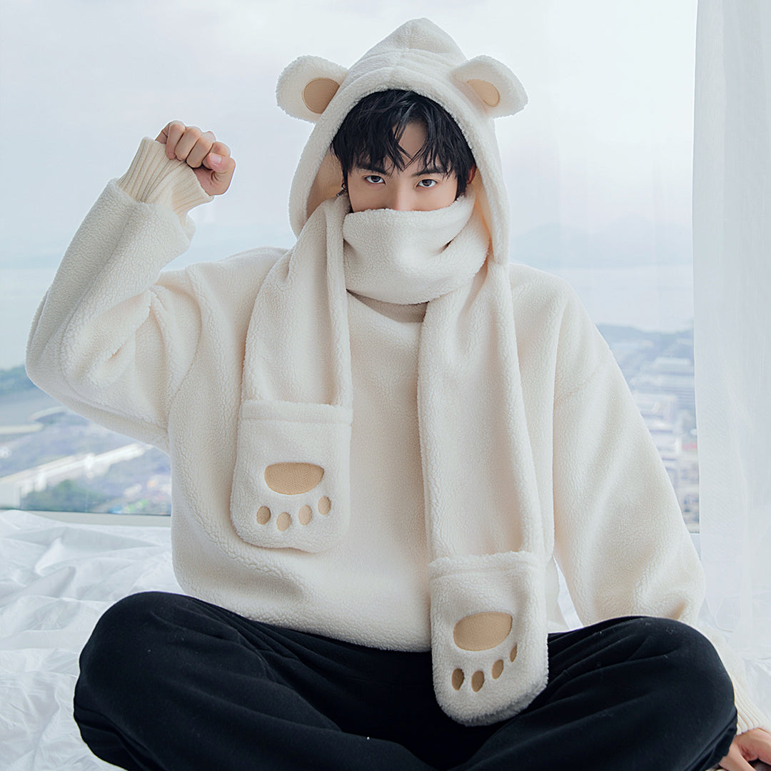 CHIC ERRO Chic Erro winter lazy style cute bear ear tops men with cute scarf detachable hooded sweater