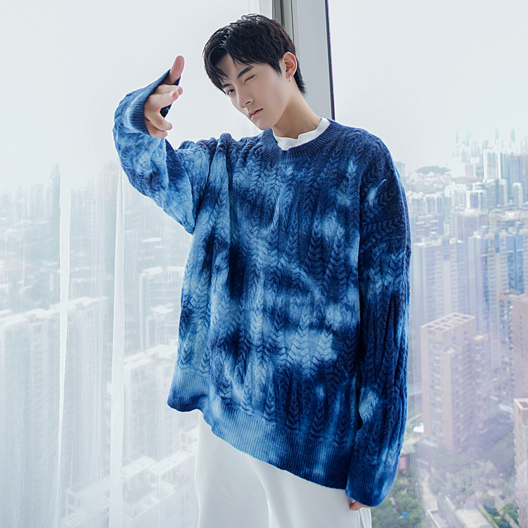 CHIC ERRO Chic Erro winter lazy wind round neck sweater twist Korean loose Japanese men's tie-dye sweater tide