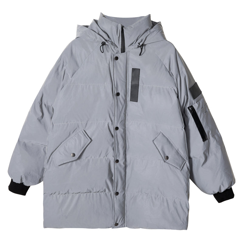 CHIC ERRO Chic Erro winter loose mid-length reflective hooded cotton-padded jacket Korean version of the trend of men's casual jacket men