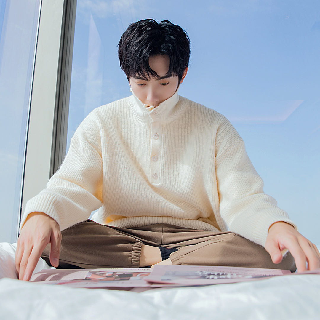 CHIC ERRO Chic Erro winter new high-neck pullover sweater men's decorative buckle loose handsome solid color casual sweater