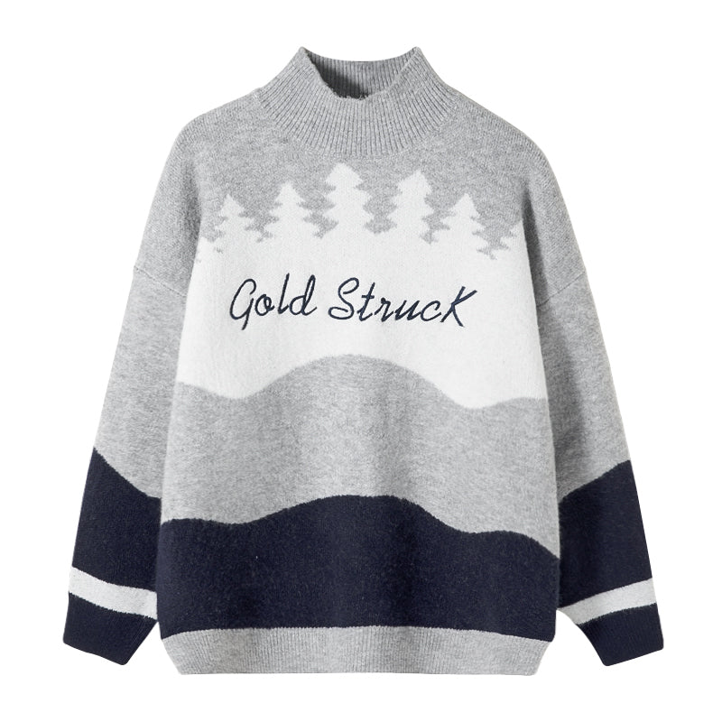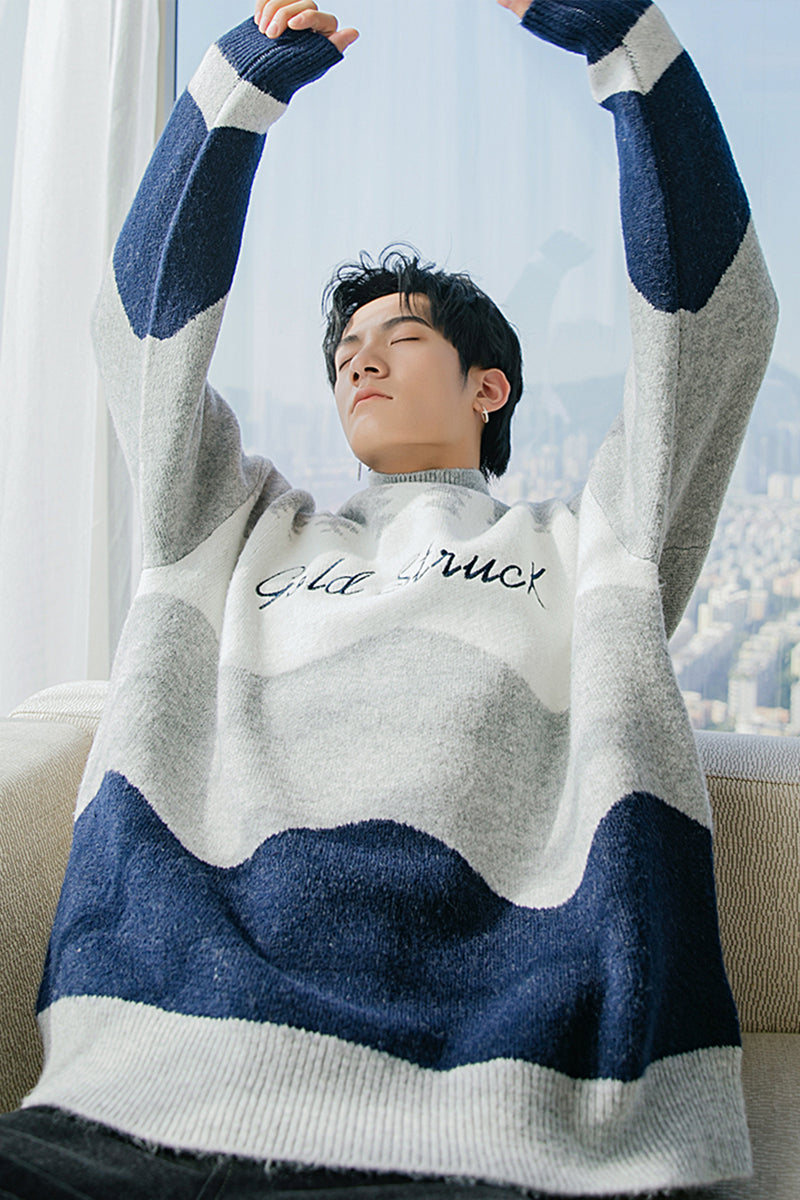 CHIC ERRO Chic Erro winter new high-neck sweater men's contrast color letter jacquard Korean loose thick sweater