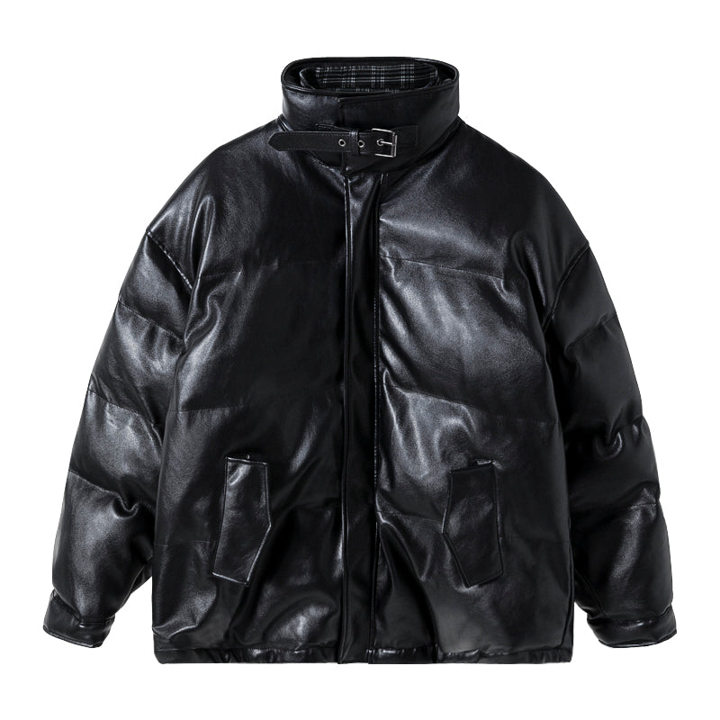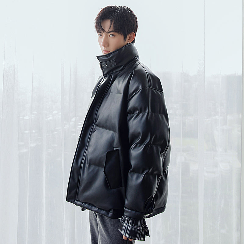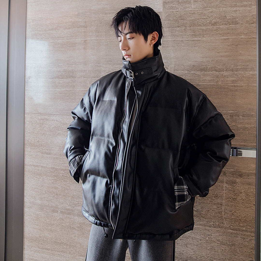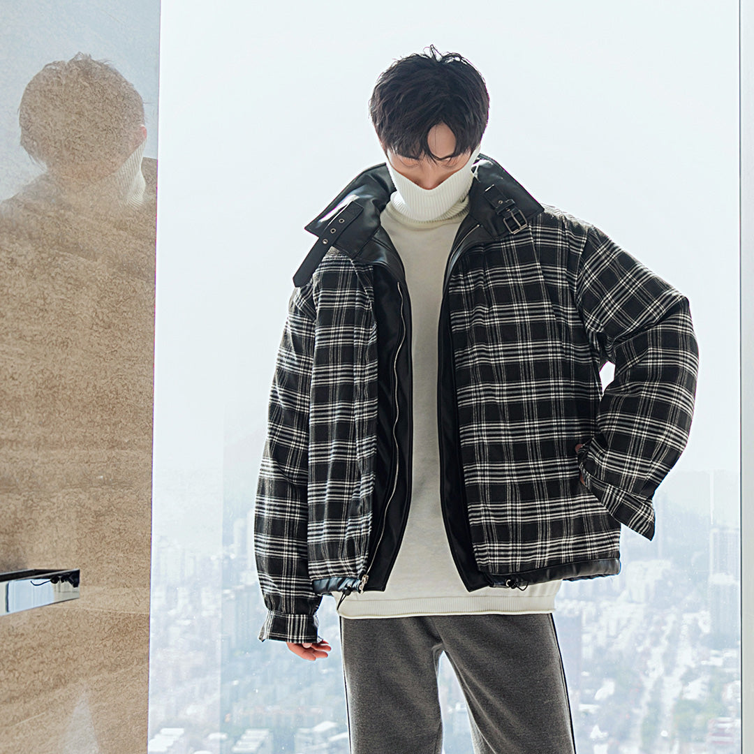 CHIC ERRO Chic Erro winter new high-necked bread jacket with plaid on both sides, thick warm loose men's leather jacket