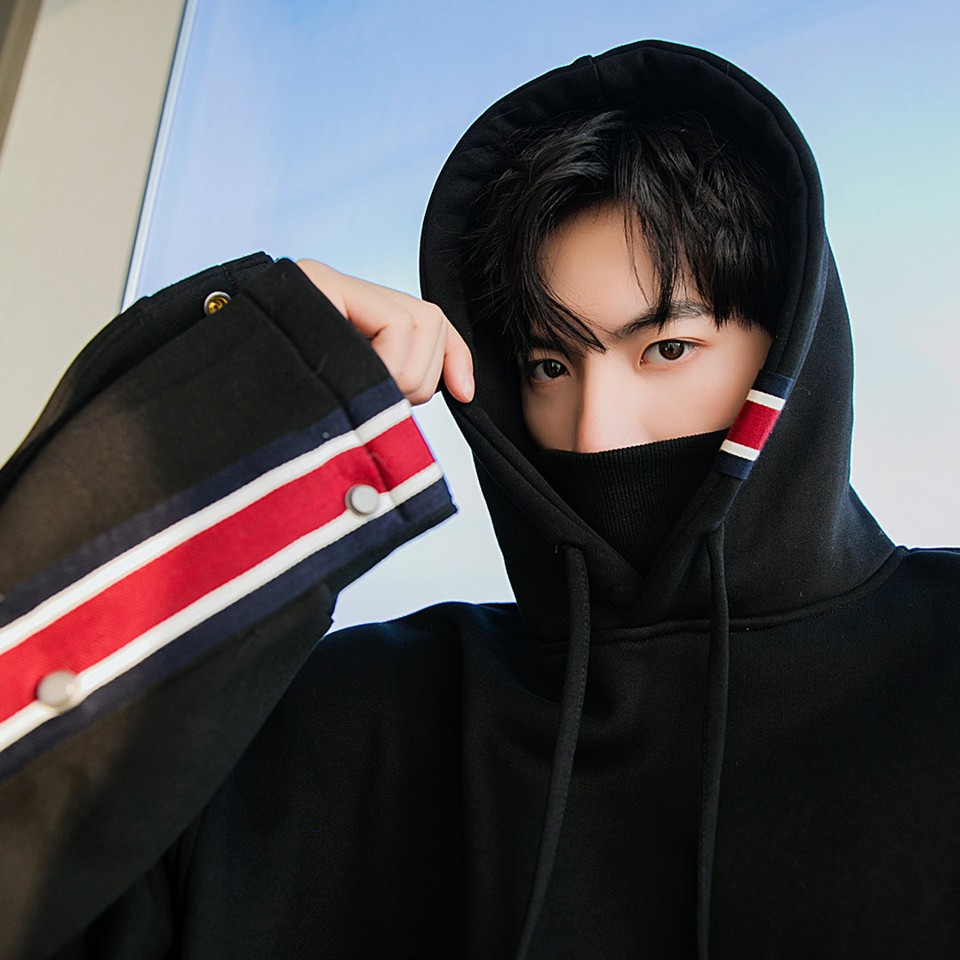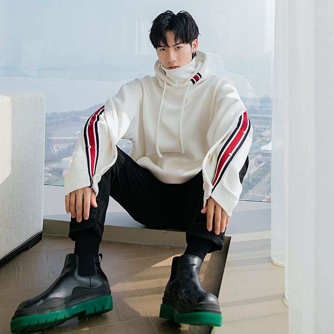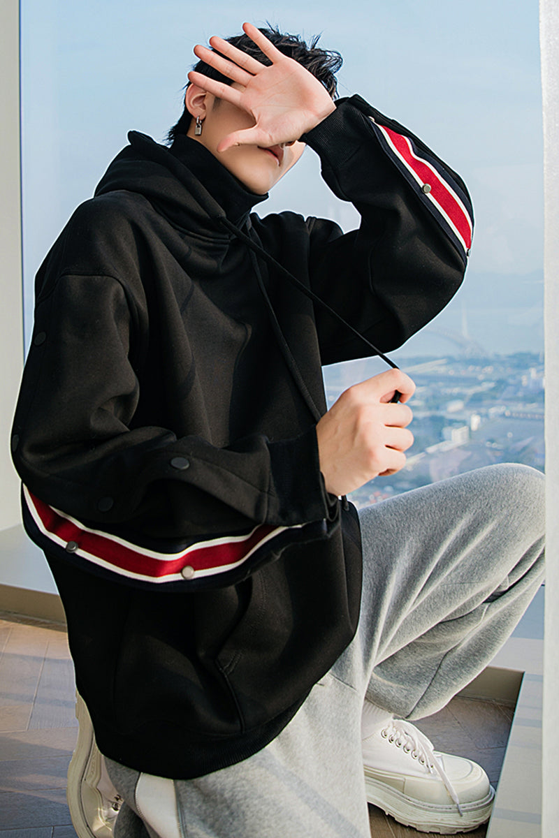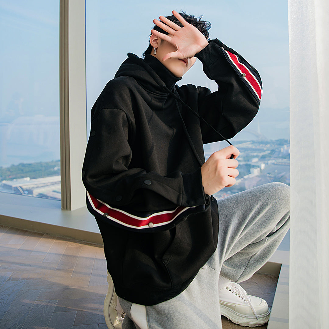 CHIC ERRO Chic Erro winter new hooded sweater contrast color stitching trend loose college style men's breasted top