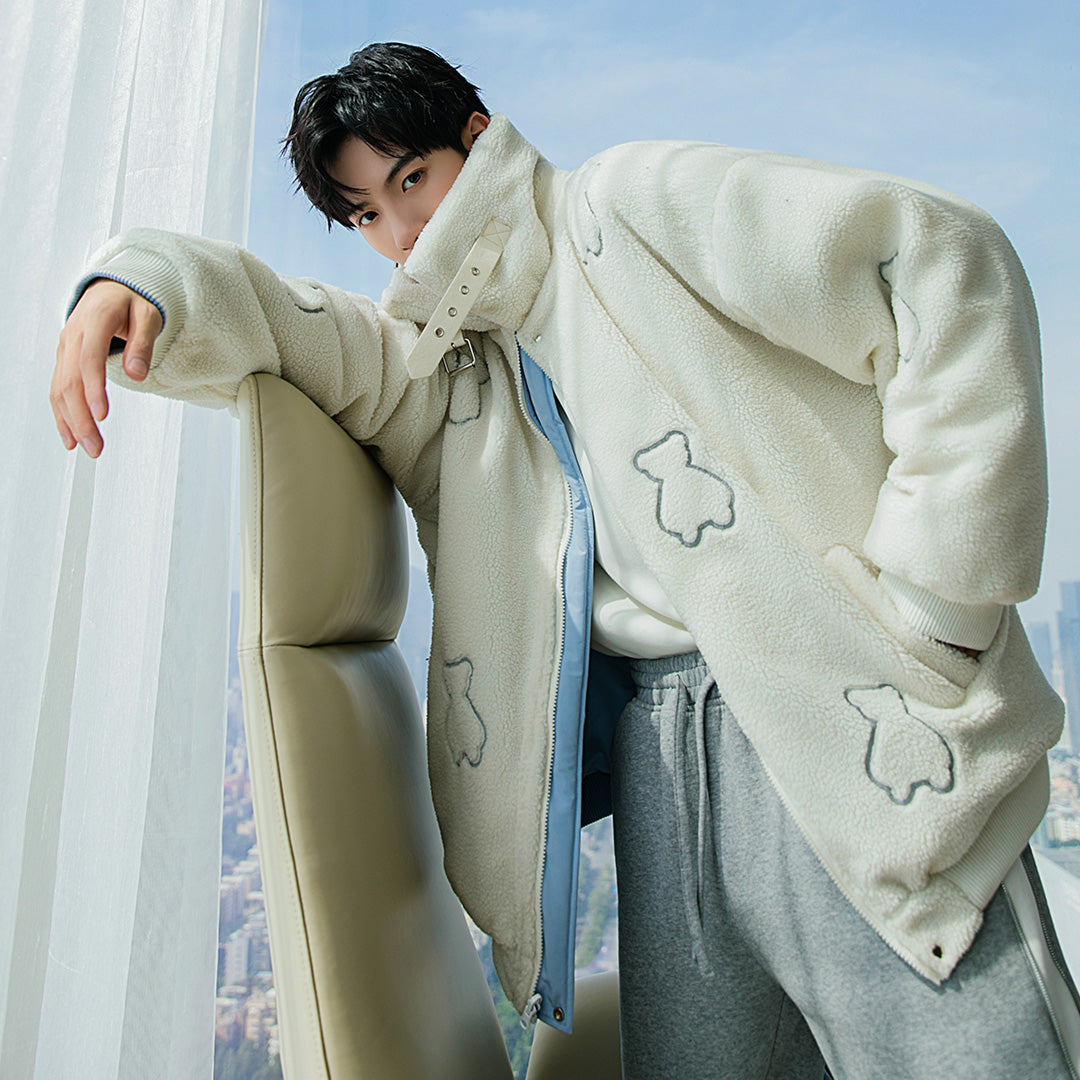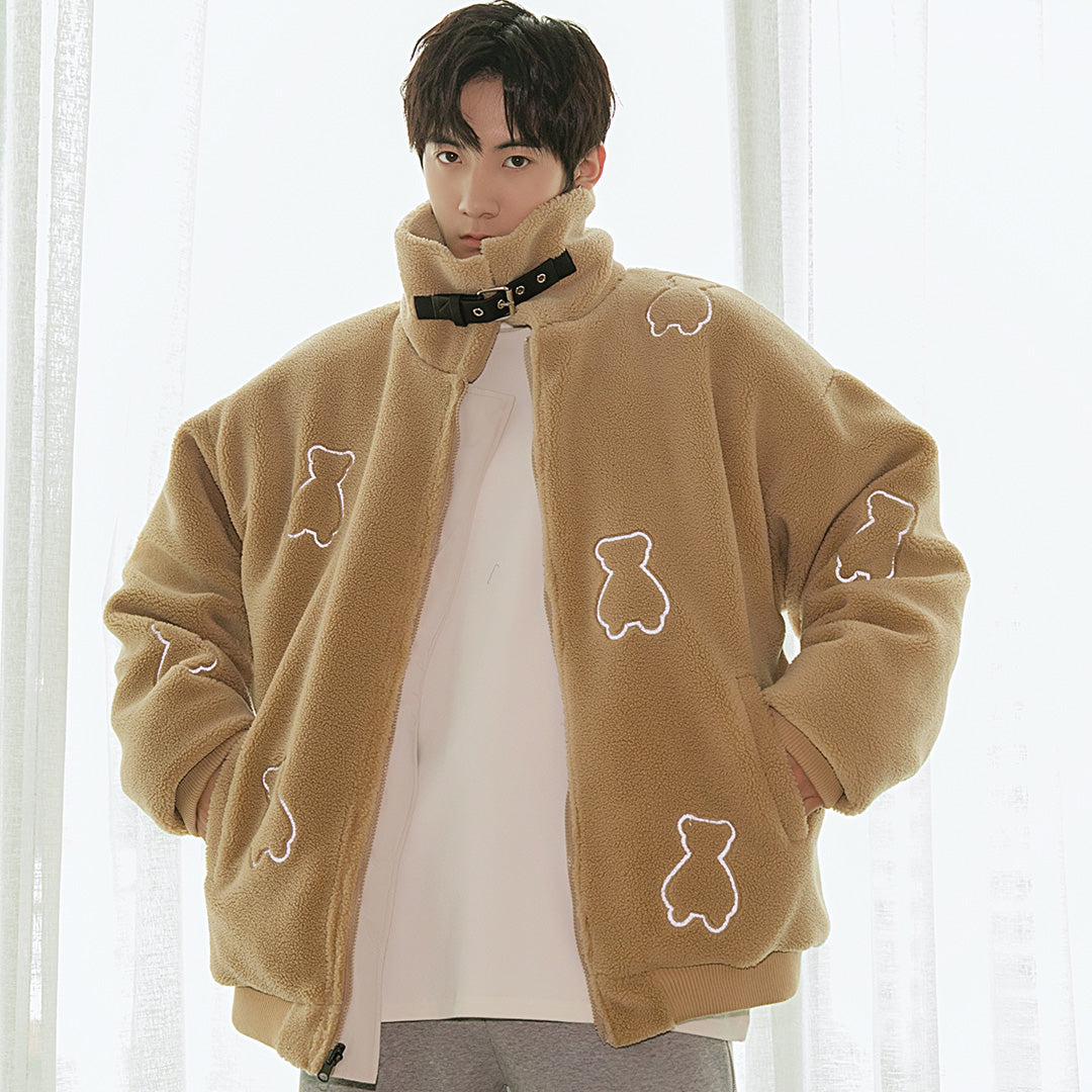 CHIC ERRO Chic Erro winter new lamb velvet padded jacket men's double-sided wear cute bear handsome thickened stand collar