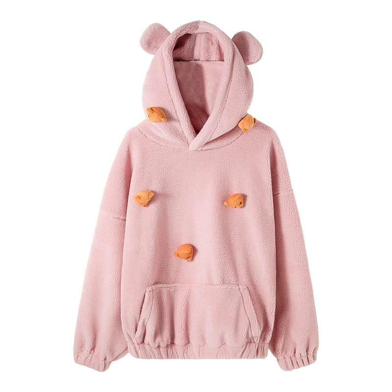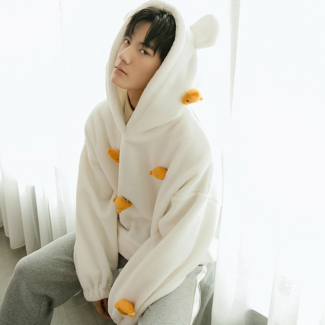 CHIC ERRO Chic Erro winter new lamb wool hooded sweater design sense cute bear trend loose long-sleeved men