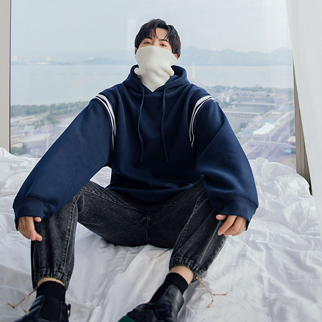 CHIC ERRO Chic Erro winter new lazy wind hit color stitching long-sleeved loose casual sports men's hooded sweater