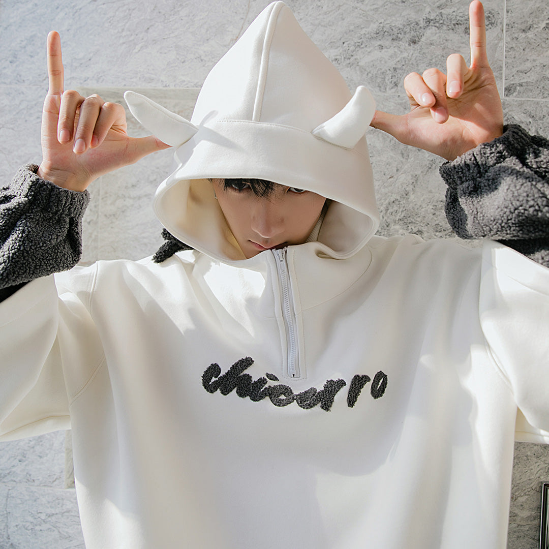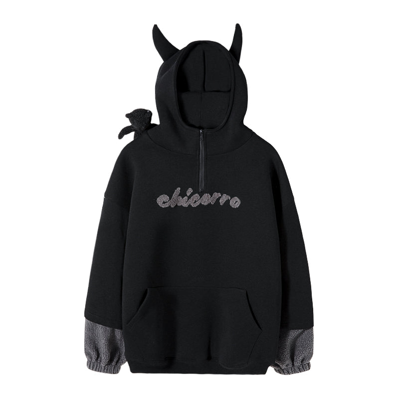 CHIC ERRO Chic Erro winter new little devil hooded sweater design sense flocking letters contrast color stitching shirt men