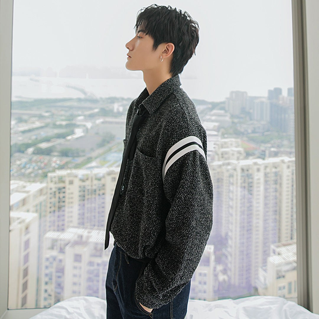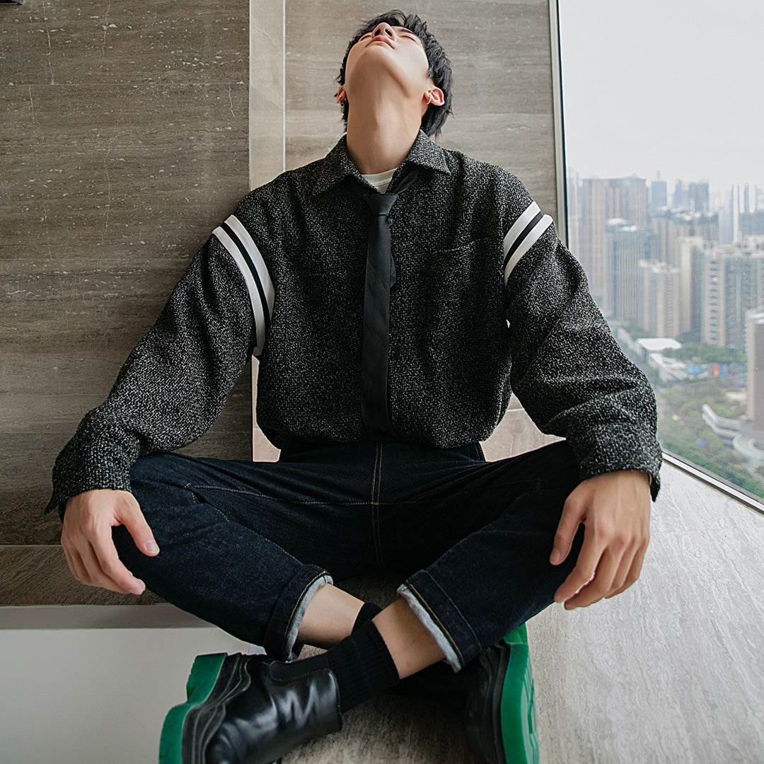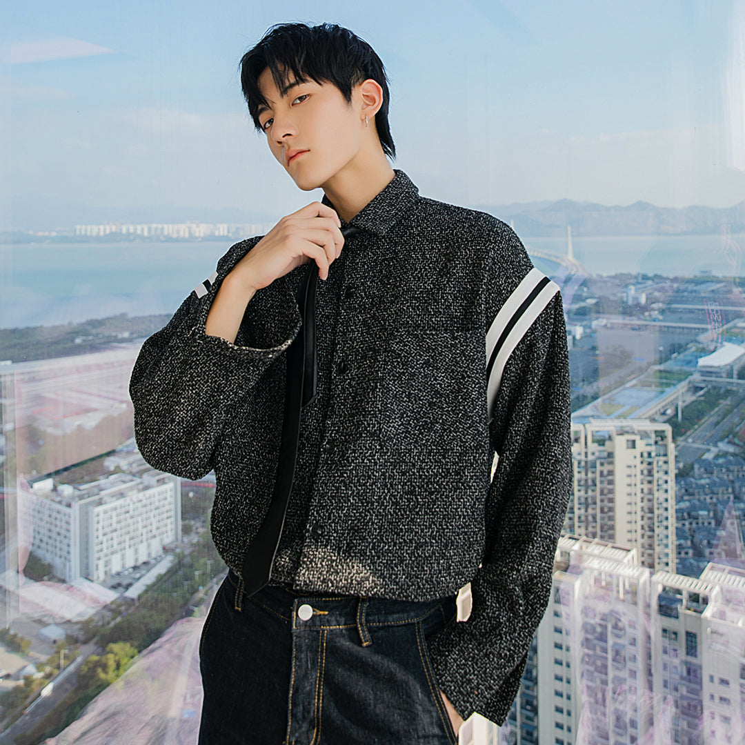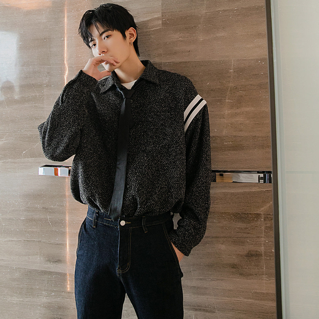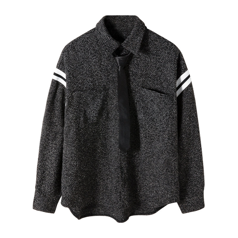 CHIC ERRO Chic Erro winter new long-sleeved thickening contrast color trend youth casual tie shirt
