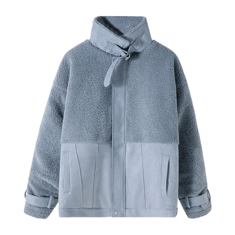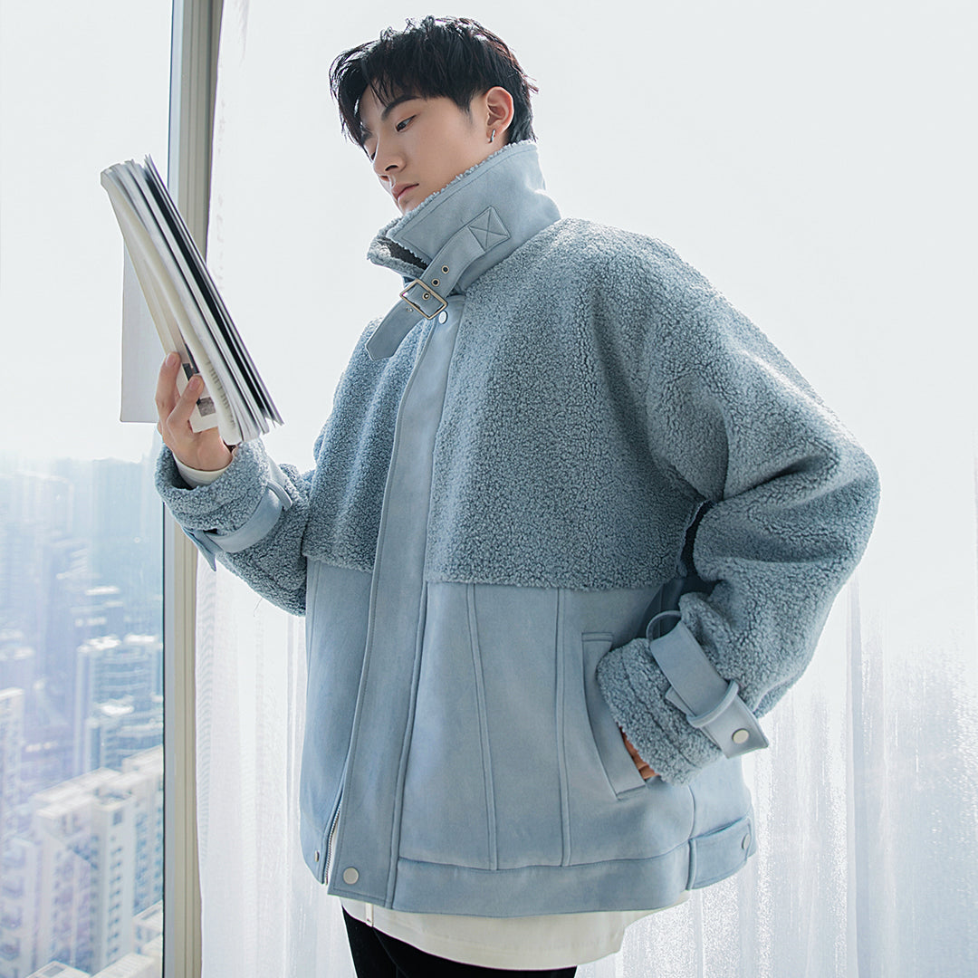 CHIC ERRO Chic Erro winter new men's deerskin velvet coat loose warmth contrast stitching Korean style stand-up collar cotton coat