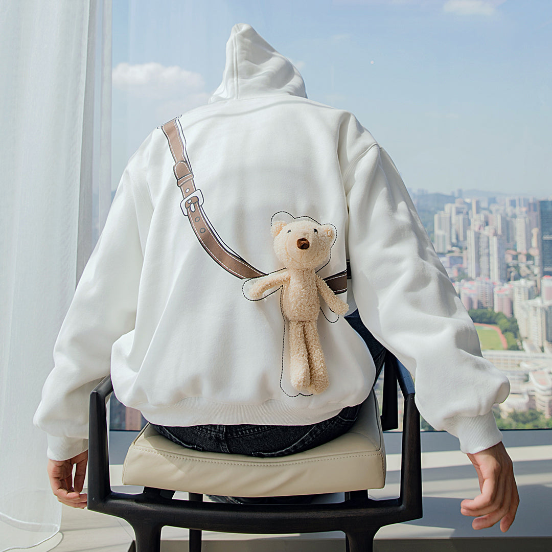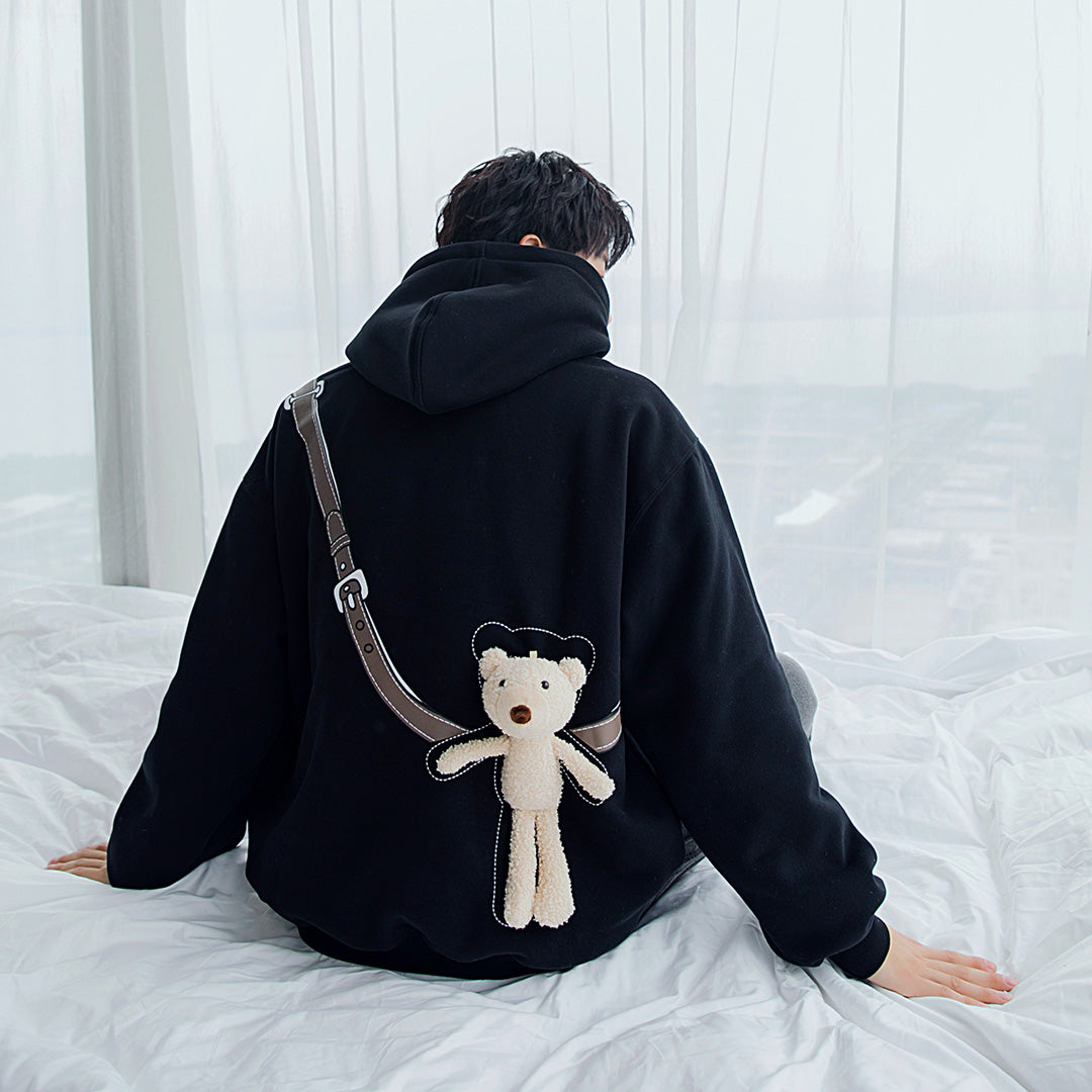 CHIC ERRO Chic Erro winter new men's long-sleeved design accessories cute bear loose casual hooded sweater