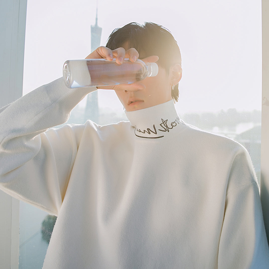 CHIC ERRO Chic Erro winter new men's printed letter sweater Korean version of loose casual all-match turtleneck sweater
