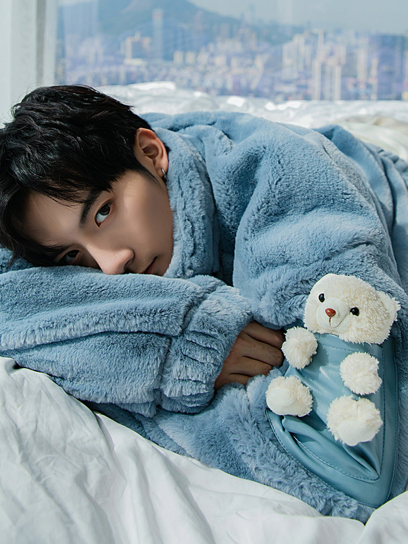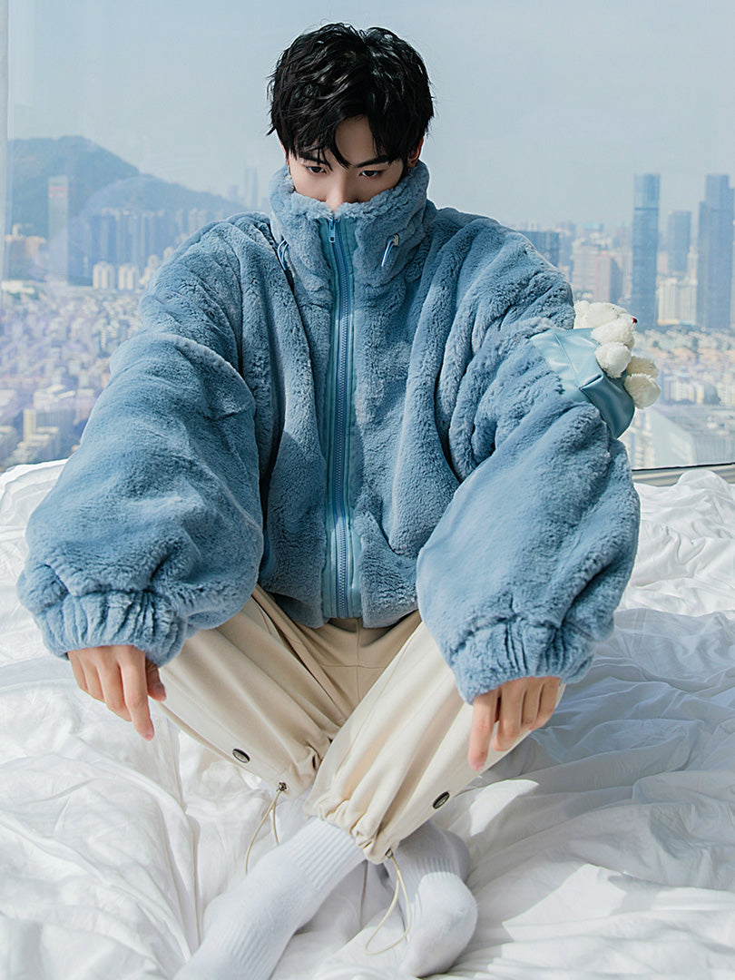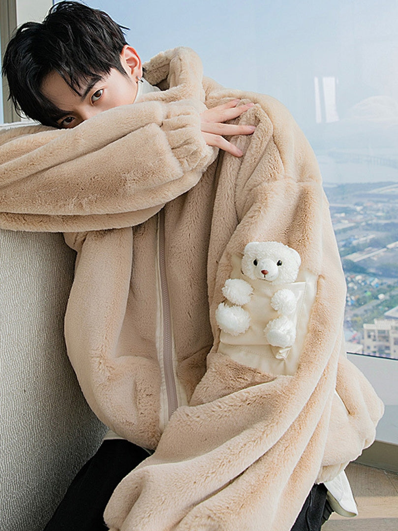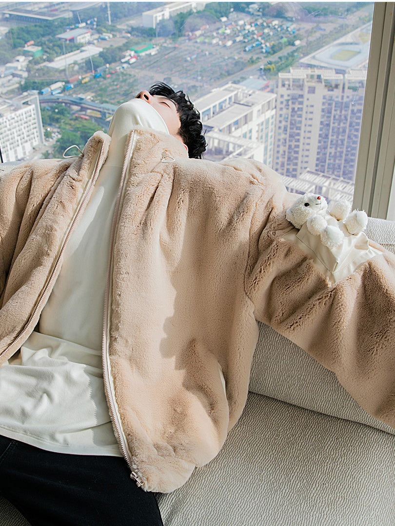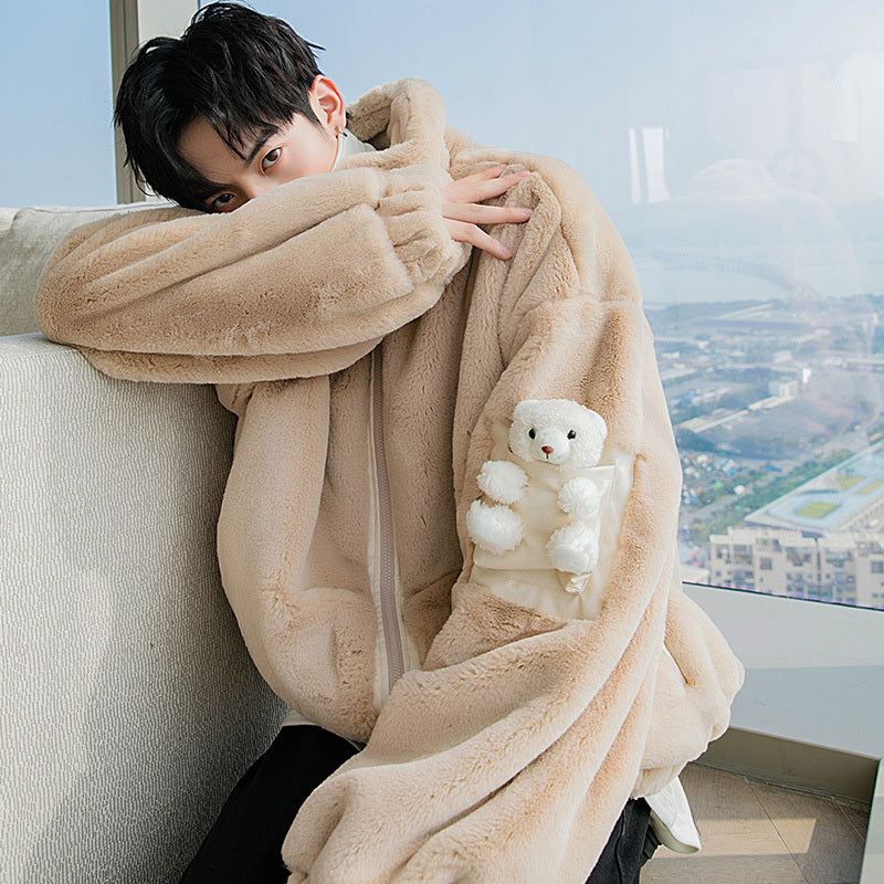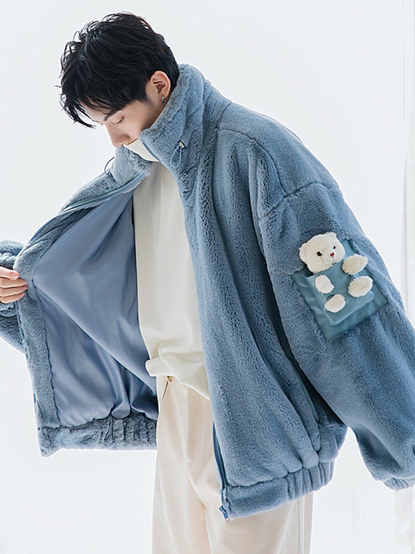 CHIC ERRO Chic Erro winter new men's rabbit velvet stand-collar cotton-padded jacket design sense cute bear loose warm jacket