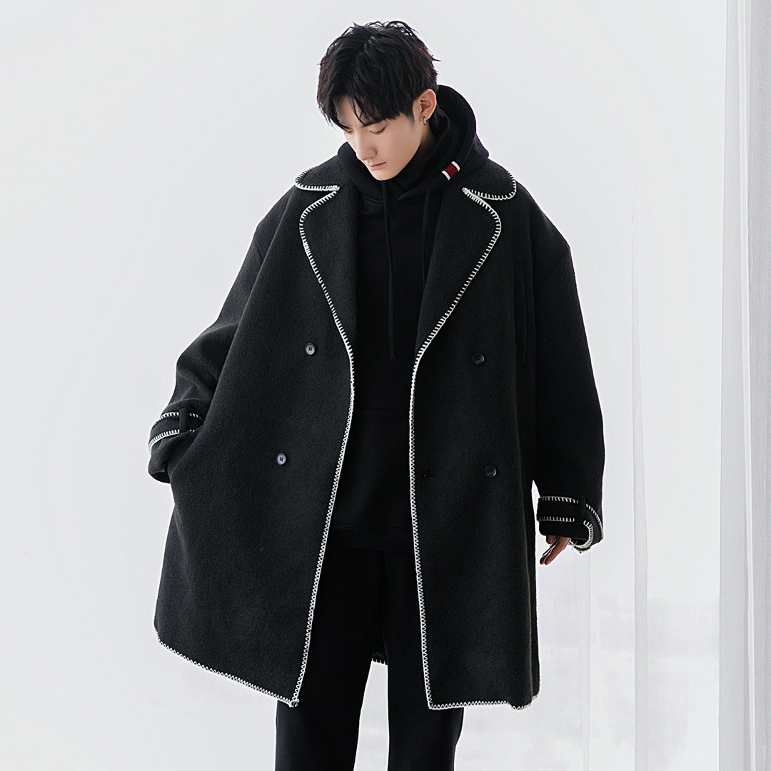 CHIC ERRO Chic Erro winter new mid-length woolen coat handsome trendy loose youth casual jacket male